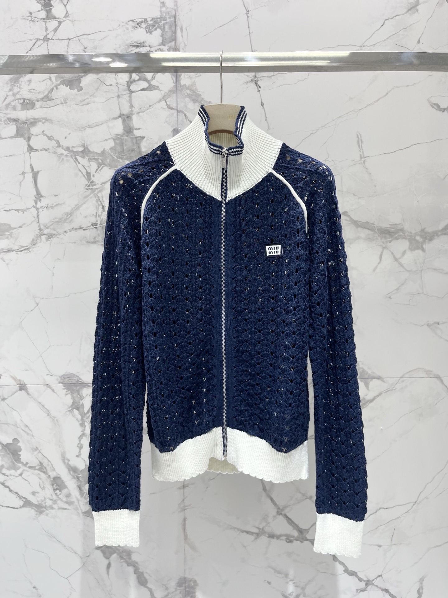 플립카라 투톤 홀로우 아웃 알파벳 로고 지퍼 니트 > 여성의류