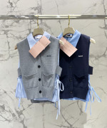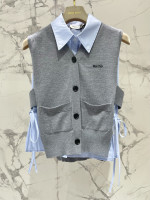 컬리지 스타일 레이어드 칸견 상의 투피스 니트 조끼 > 여성의류