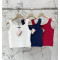 V자 플립 칼라 스티치 세밀 스트라이프 니트 숏슬리브