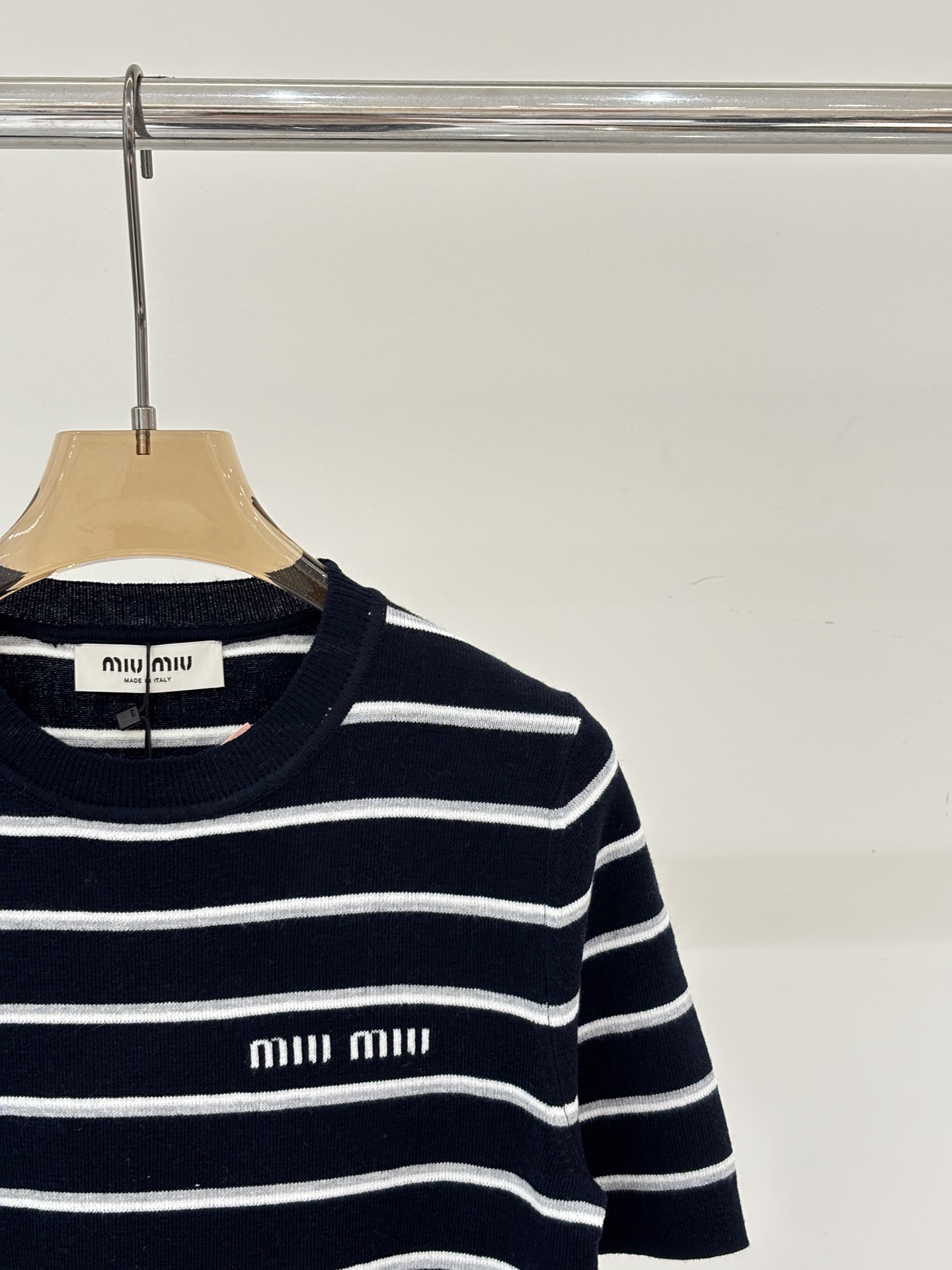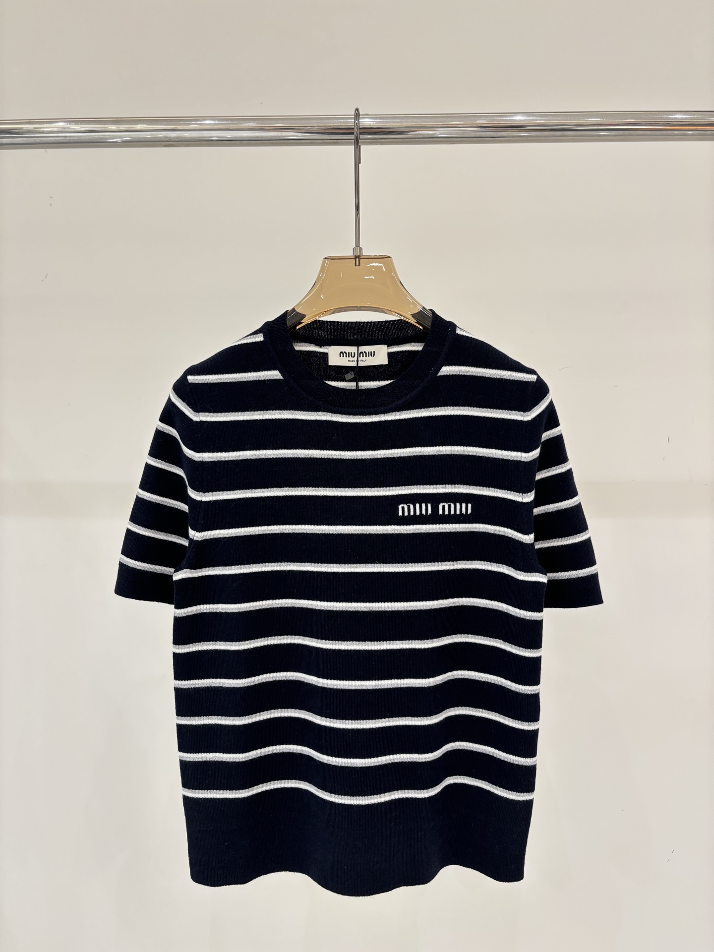 라운드넥 로고 스트라이프 피스컬러 니트 숏슬리브