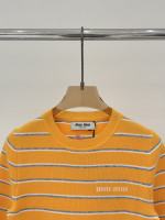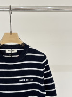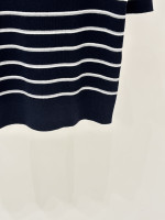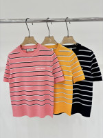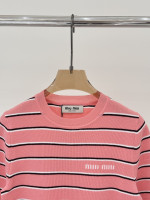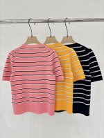 라운드넥 로고 스트라이프 피스컬러 니트 숏슬리브 > 여성의류