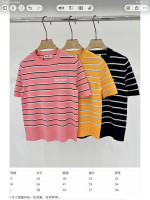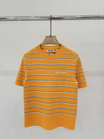 라운드넥 로고 자수 꽃무늬 칼라 이중색 브릴리언트 장식 홀로우 레저 니트 숏슬리브