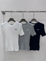 플립 칼라 로고 자수 레저 믹스 컬러 얇은 꽃 테두리 니트 숏 슬리브