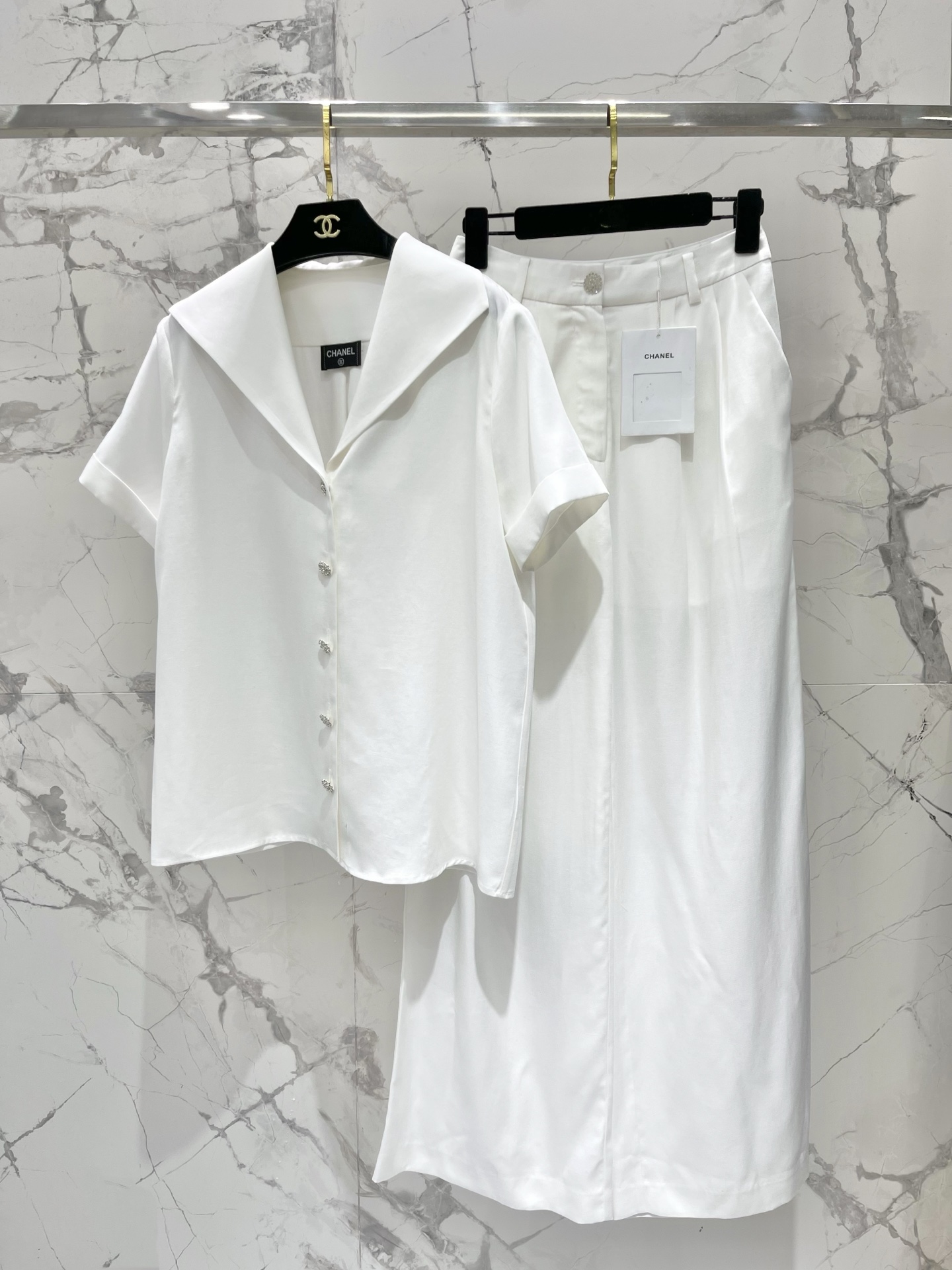 대플랩 V넥 셔츠 루즈 와이드 팬츠 세트