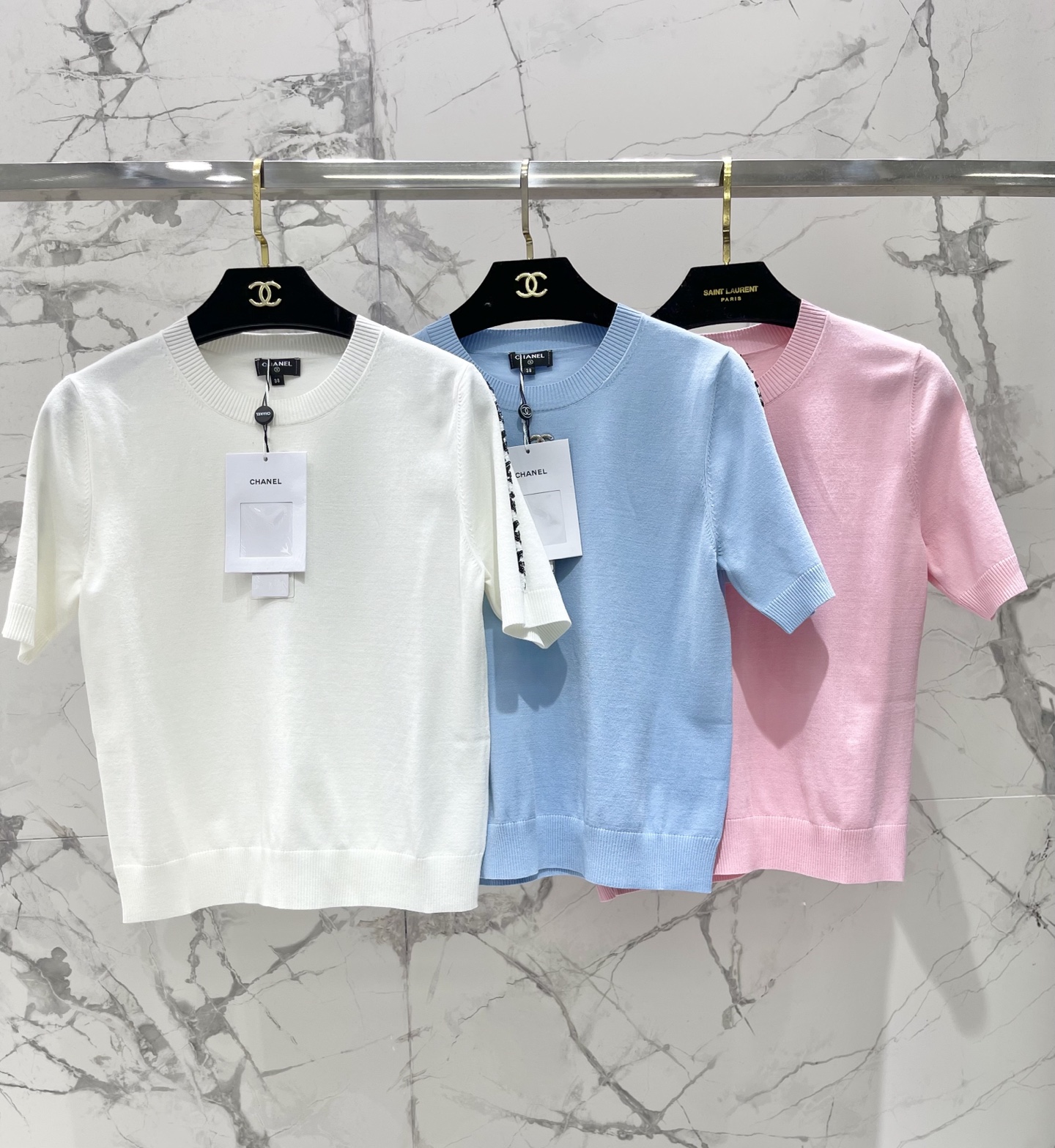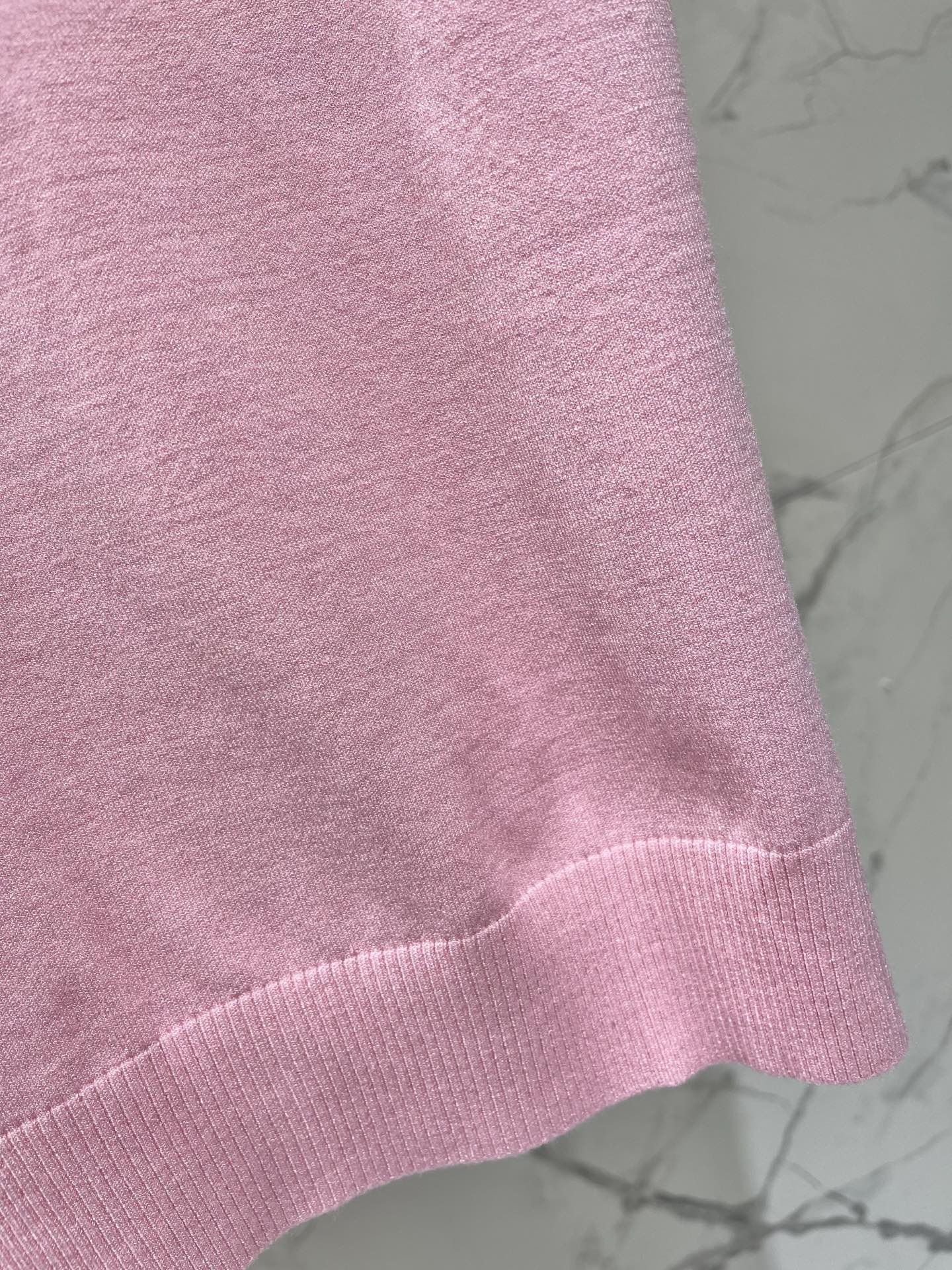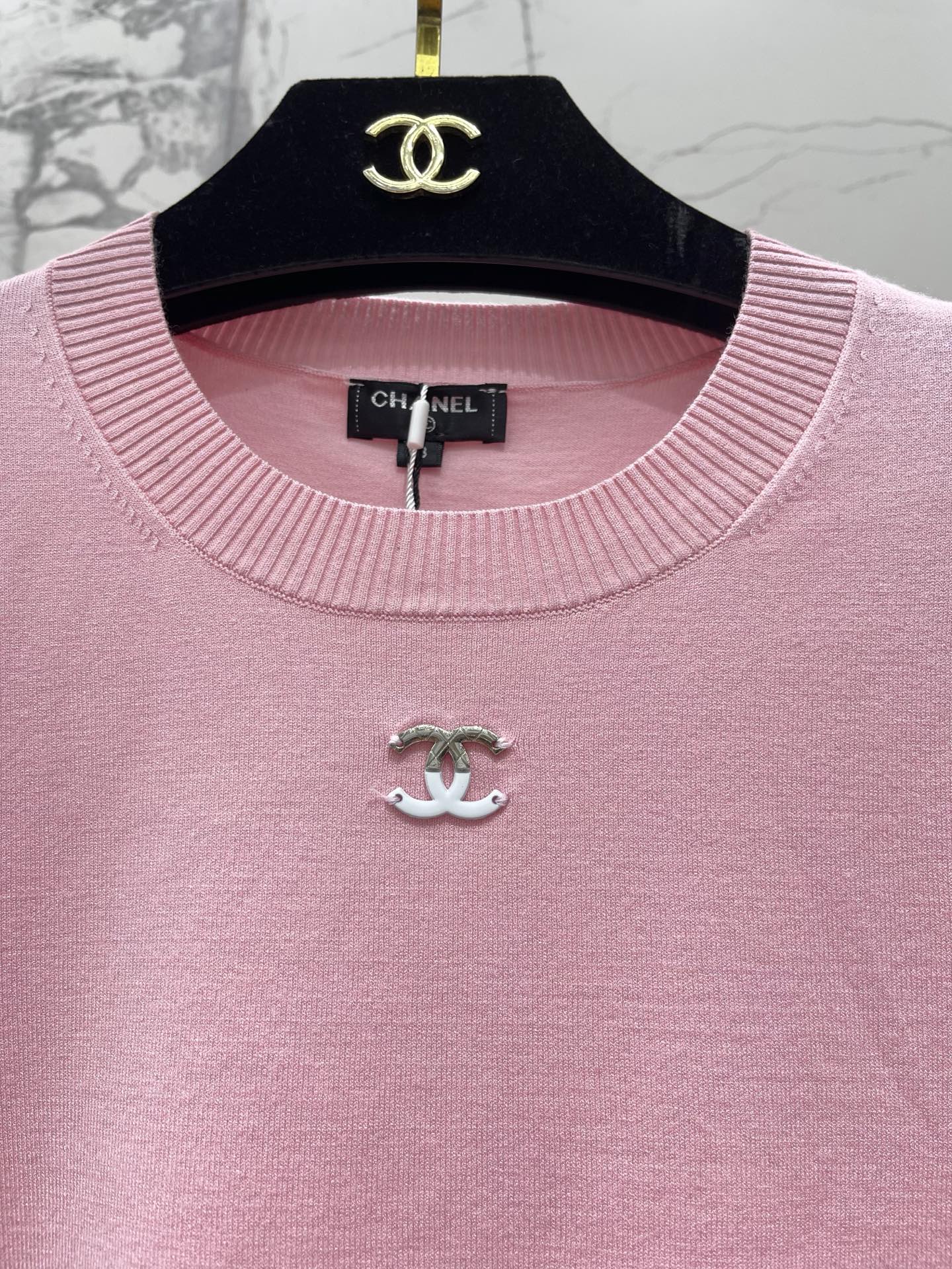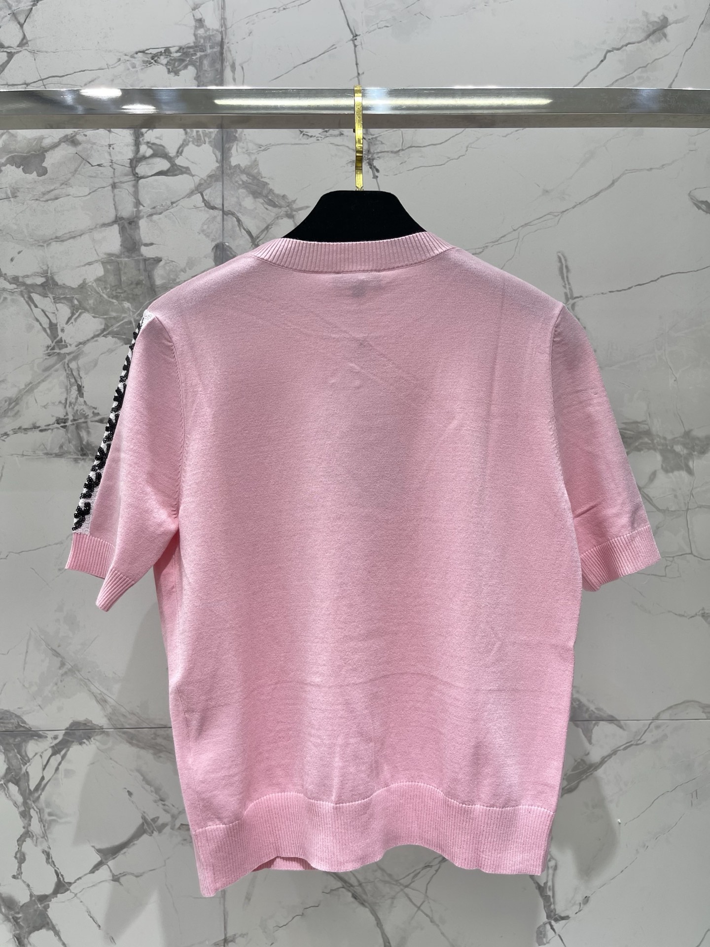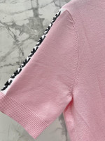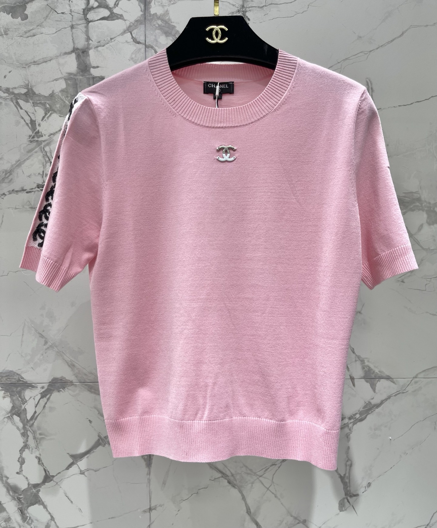 비즈 자수 메탈 로고 라운드넥 니트 반팔