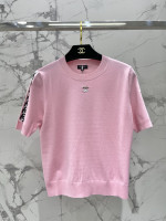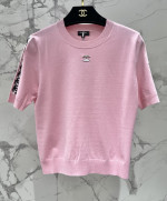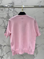 비즈 자수 메탈 로고 라운드넥 니트 반팔 > 여성의류