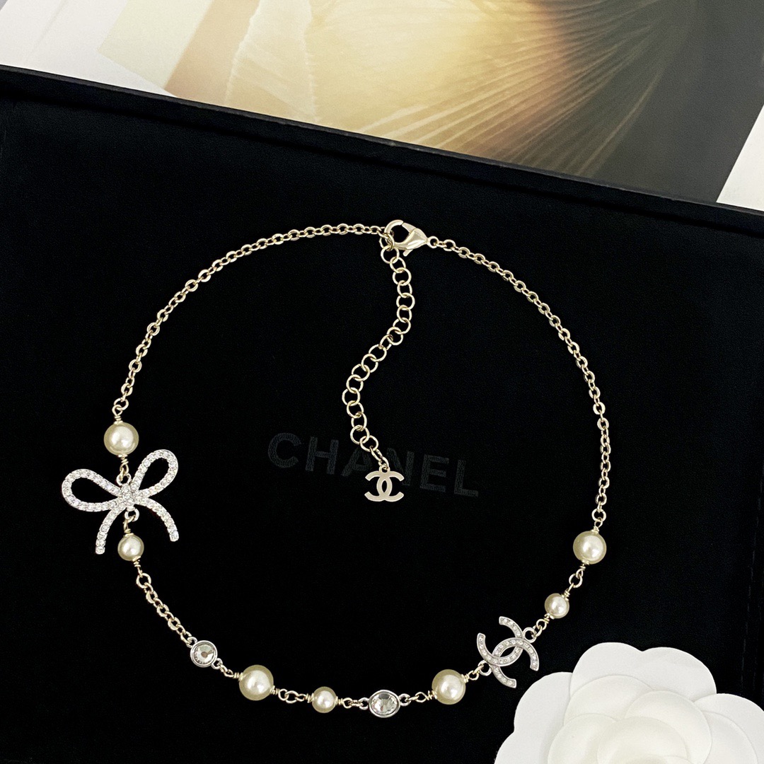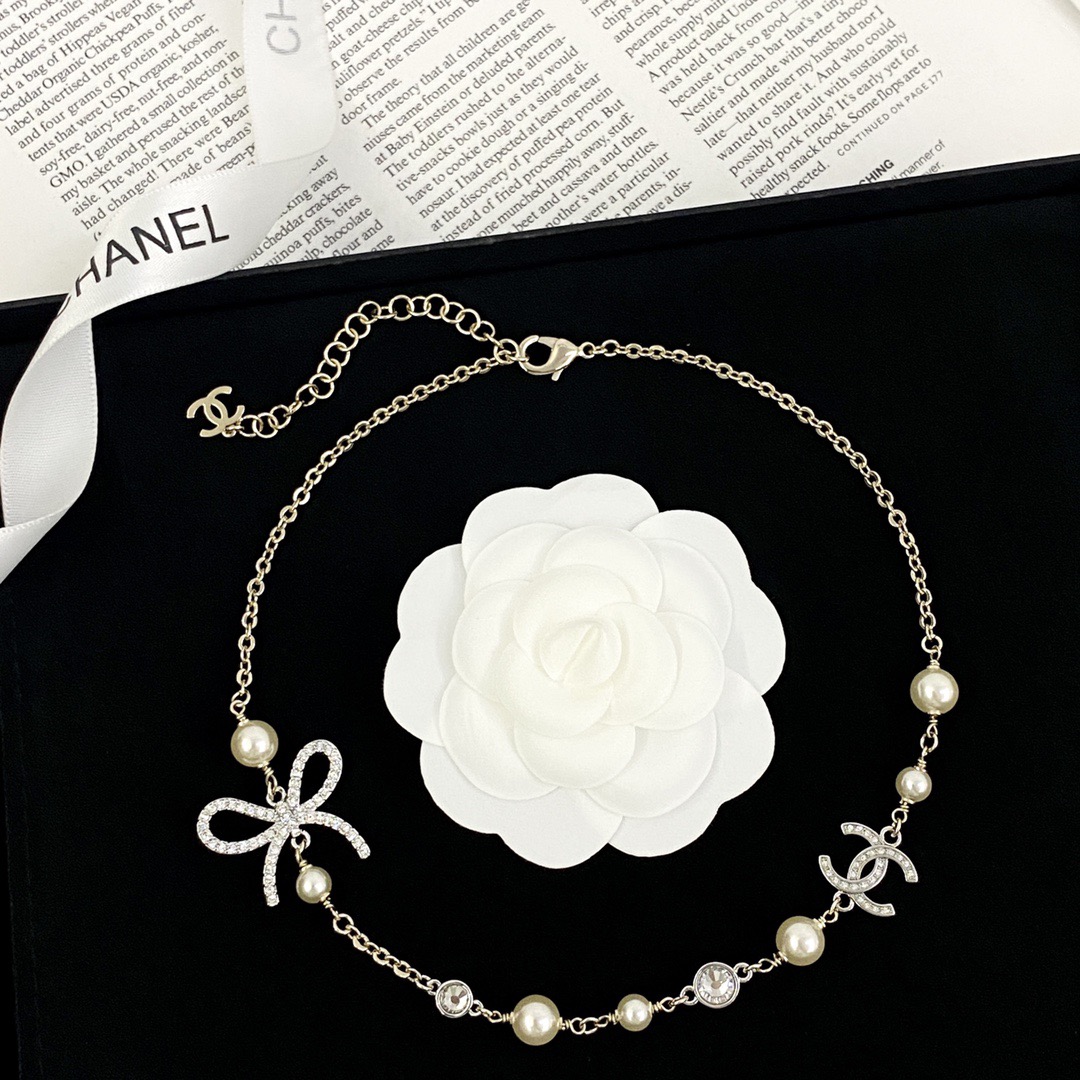 나비매듭 더블C 진주 목걸이