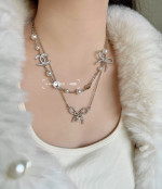 나비매듭 더블 C 진주 목걸이