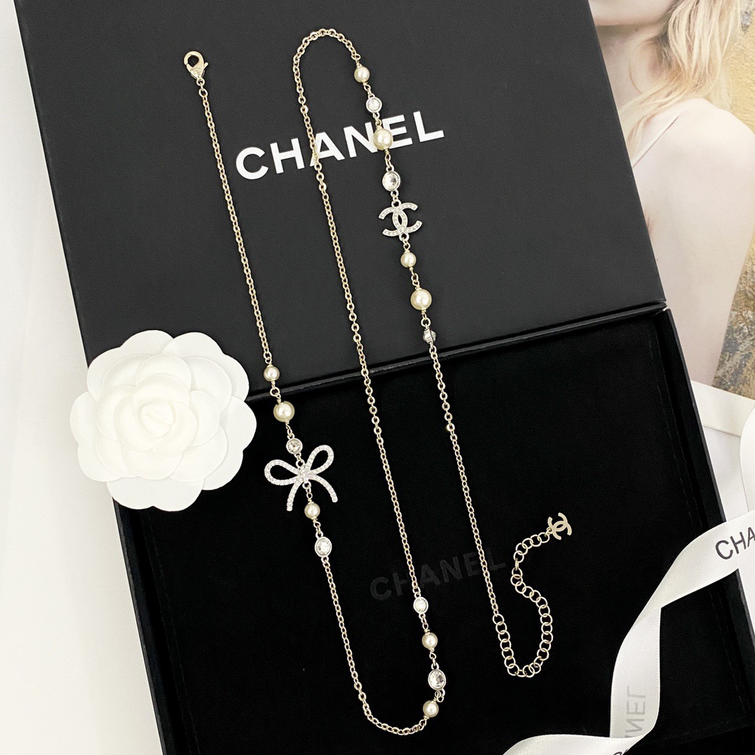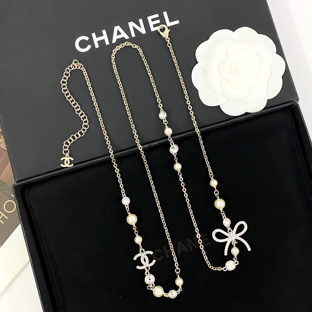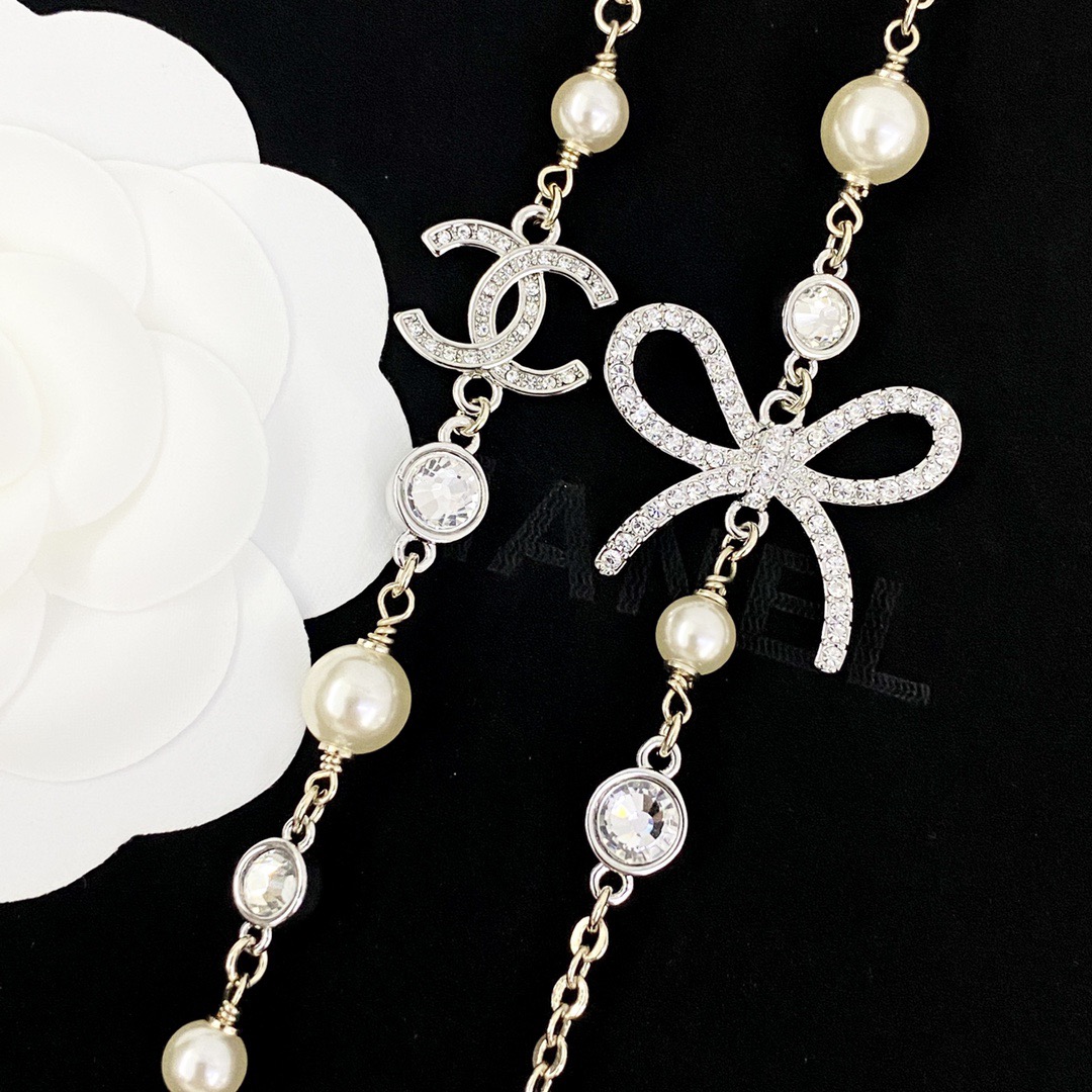 나비매듭 더블C 진주 목걸이