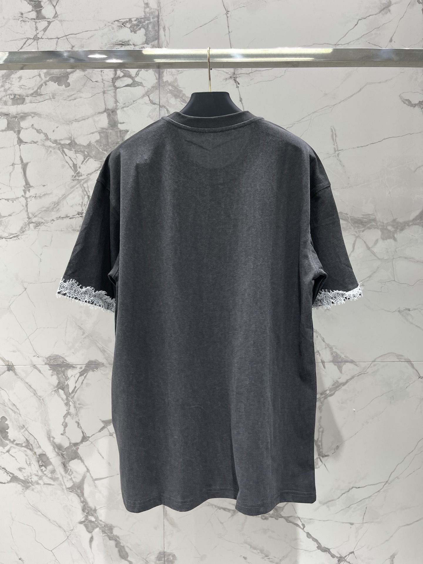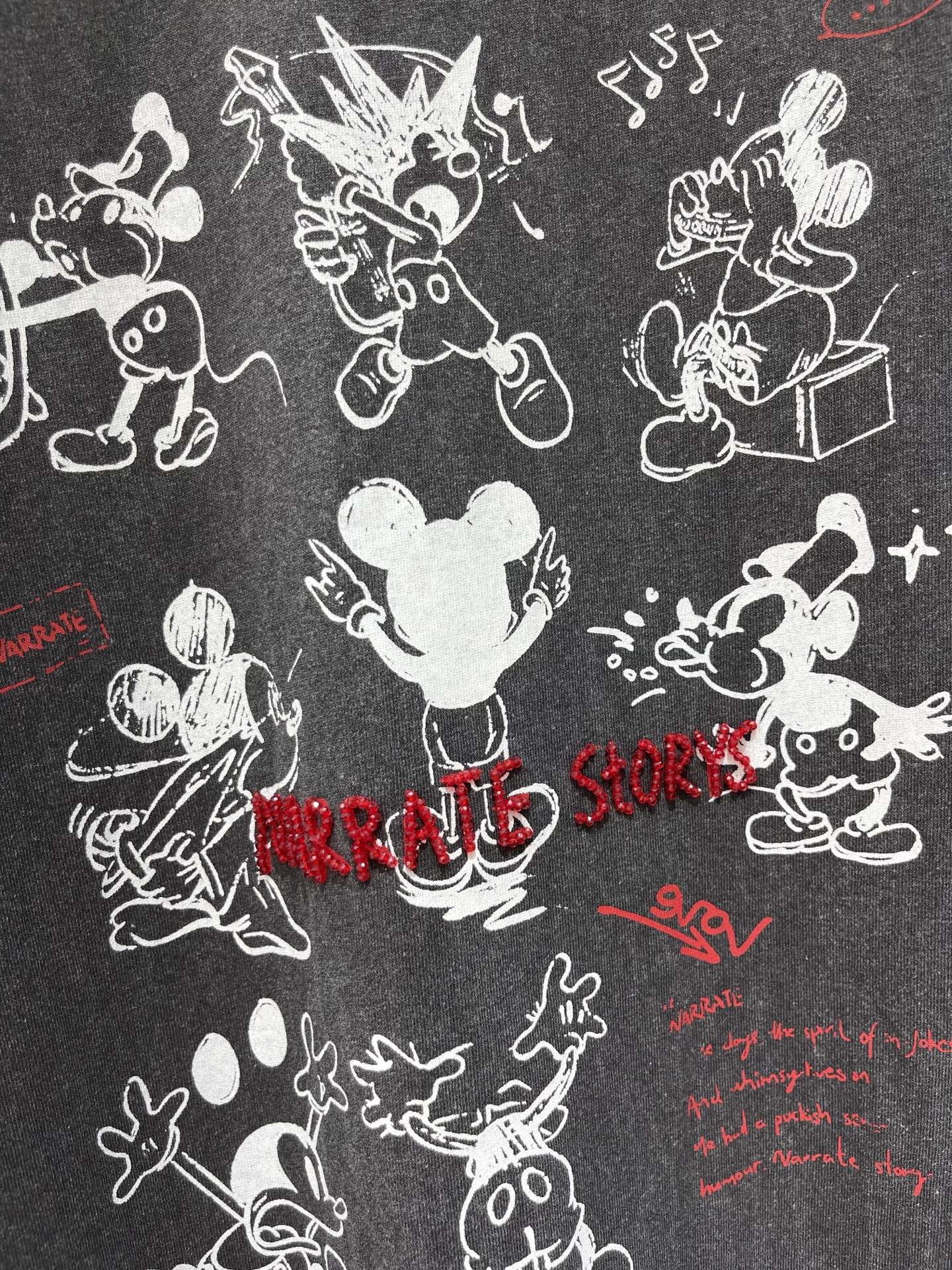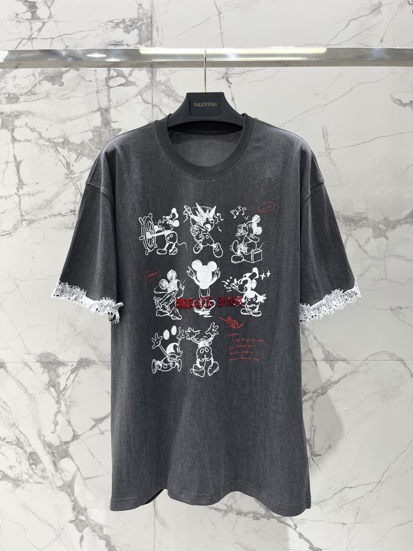 카툰 패턴 네일펄 알파벳 소매구 레이스 반팔 티셔츠