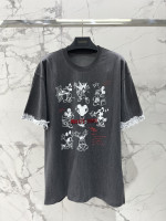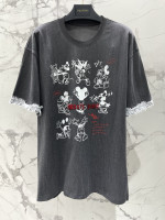 카툰 패턴 스터드 알파벳 소매구 레이스 반팔 > 여성의류