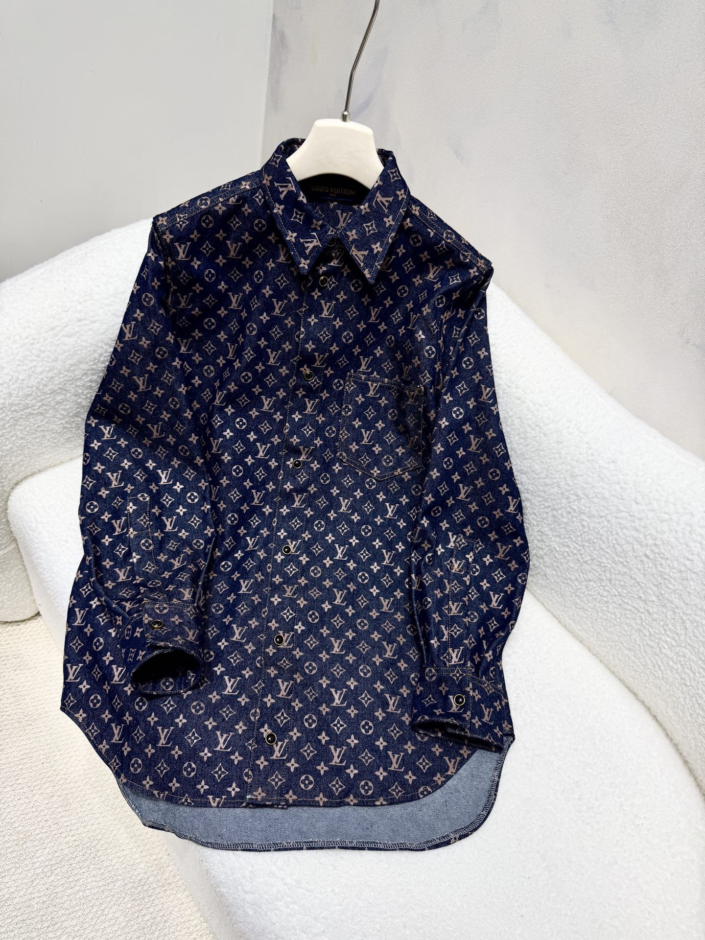 플라워 자카드 데님 셔츠