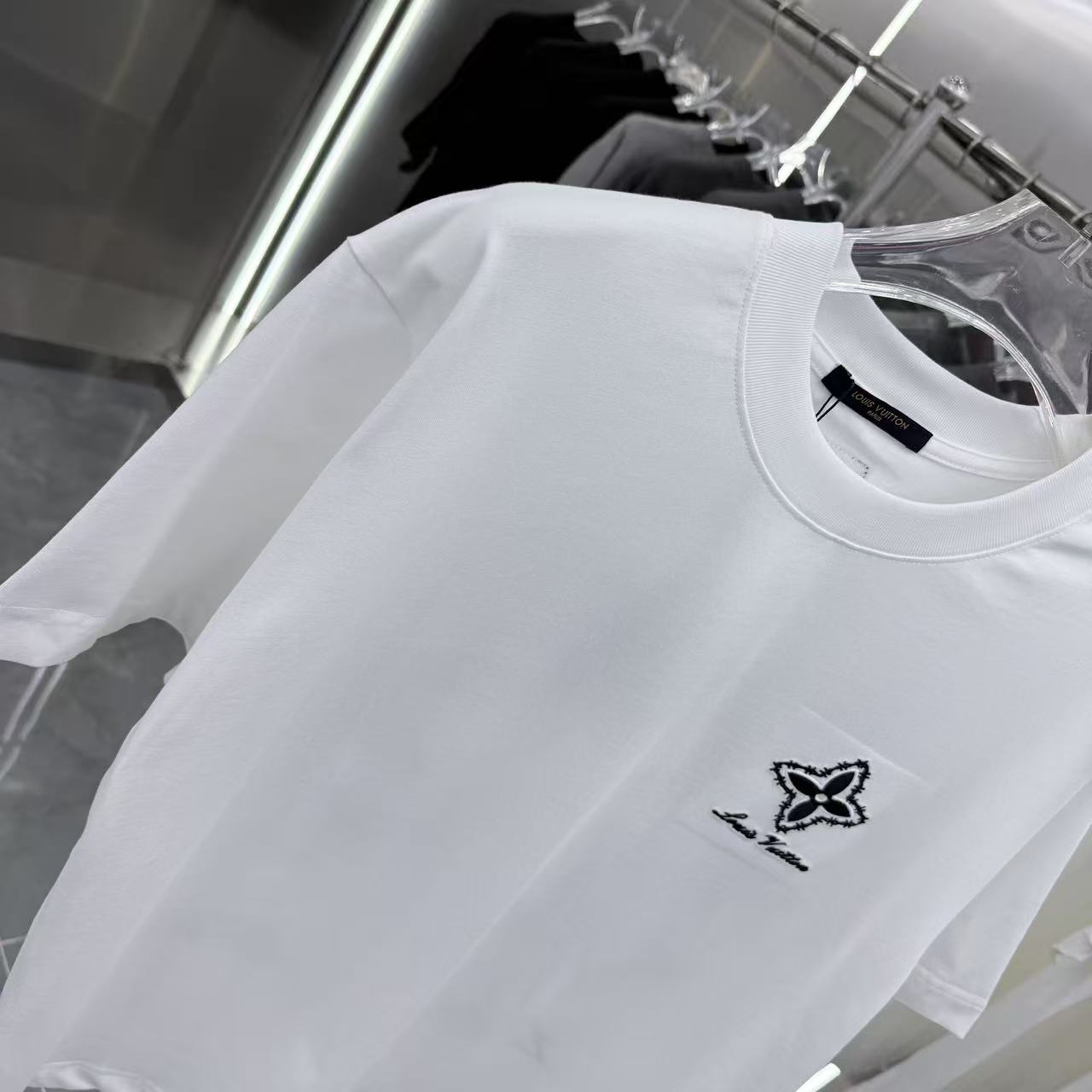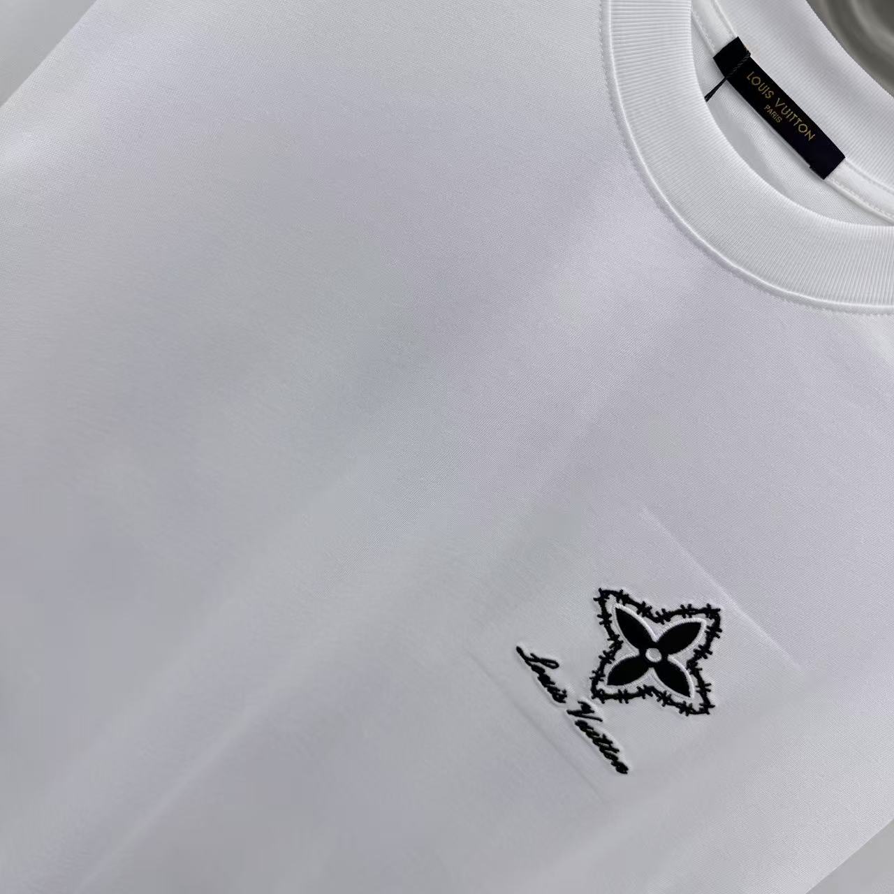 다이아몬드 패치 자수 라운드넥 반팔 티셔츠
