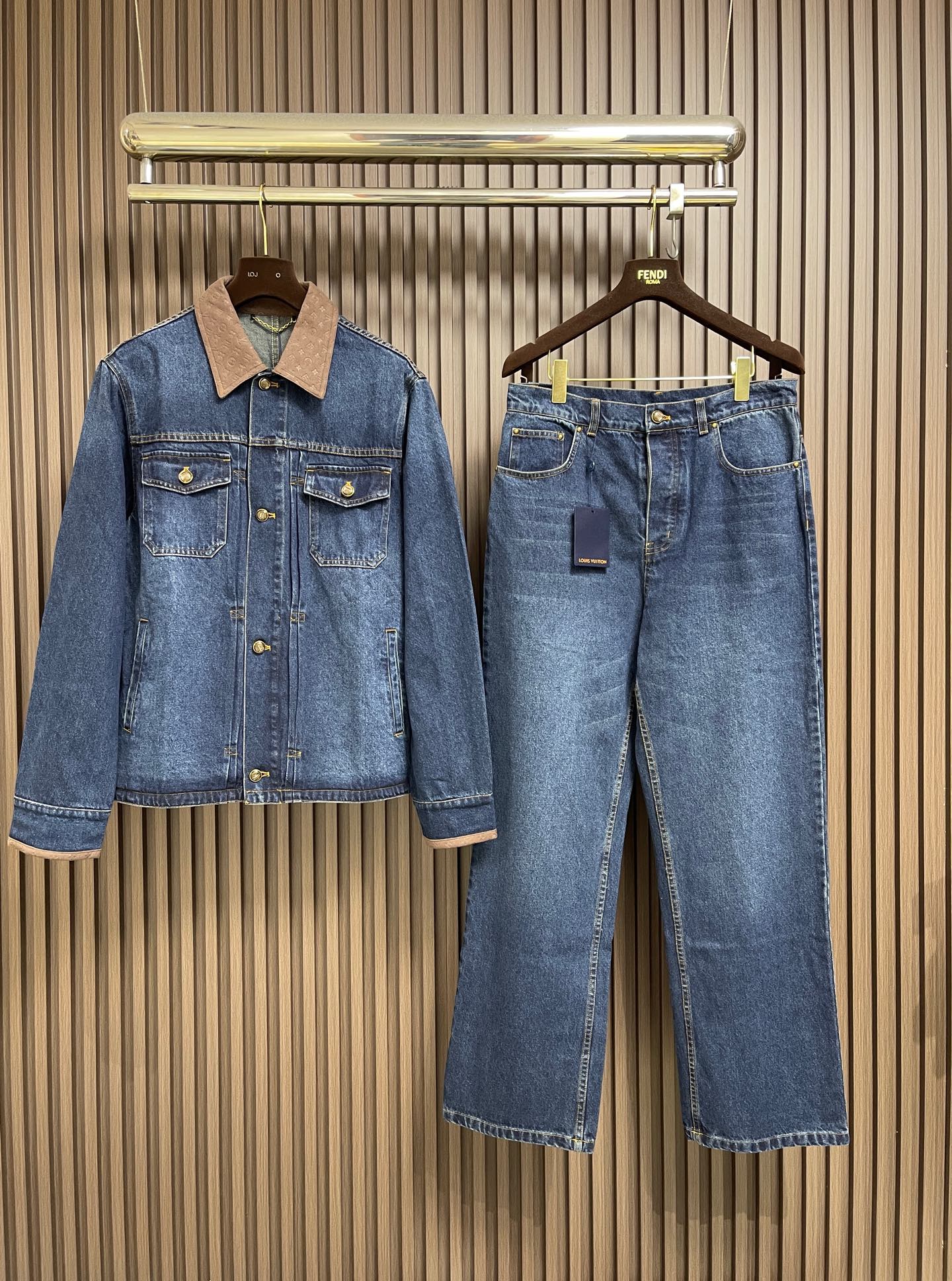 모노그램 포켓 데님 재킷 청바지 세트