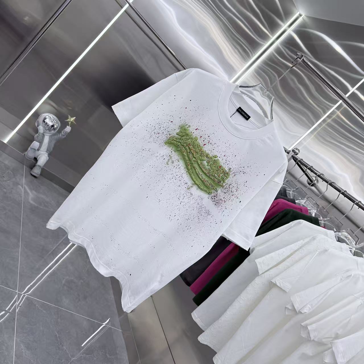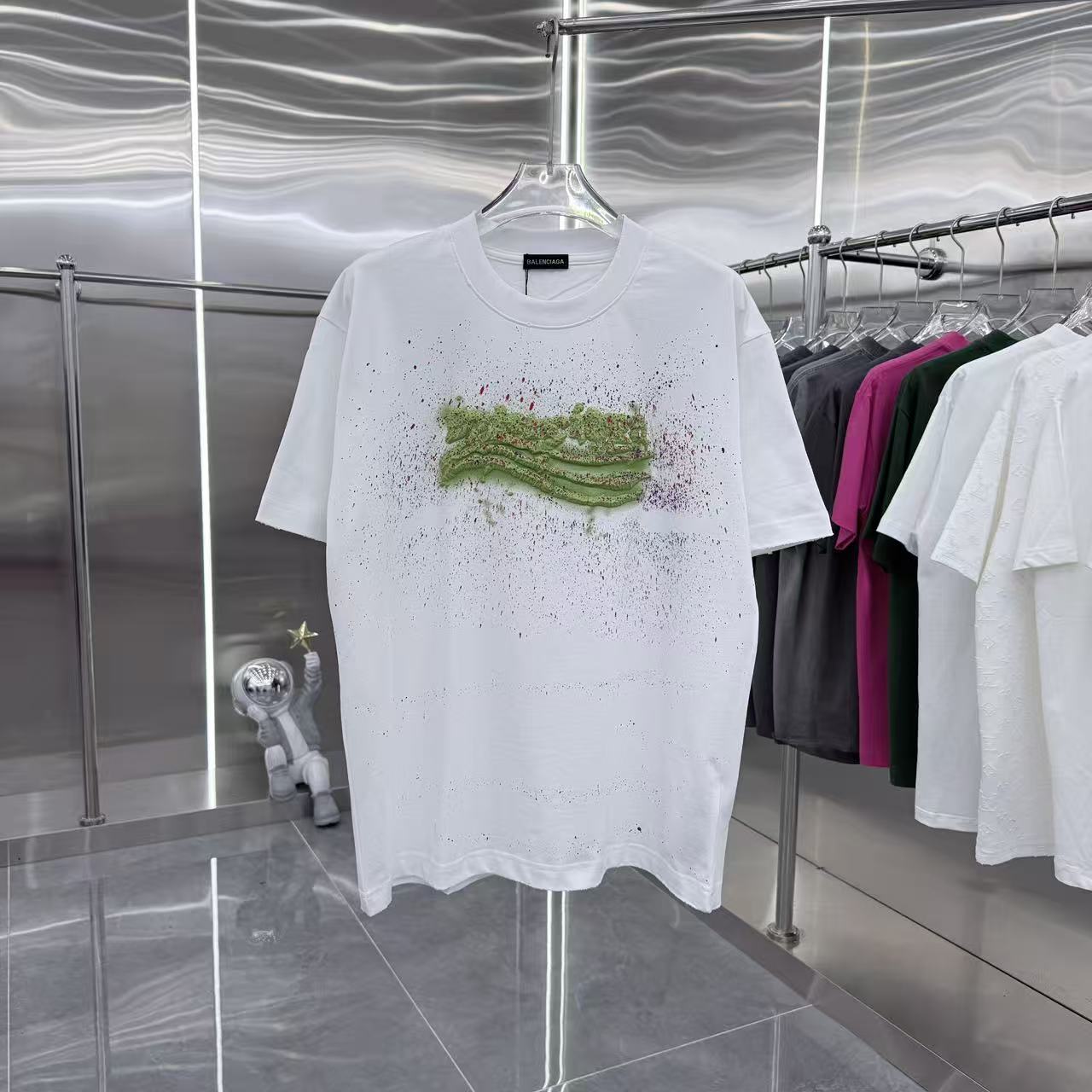 입체 발포 손그림 잉크스플래시 라운드넥 반팔 티셔츠