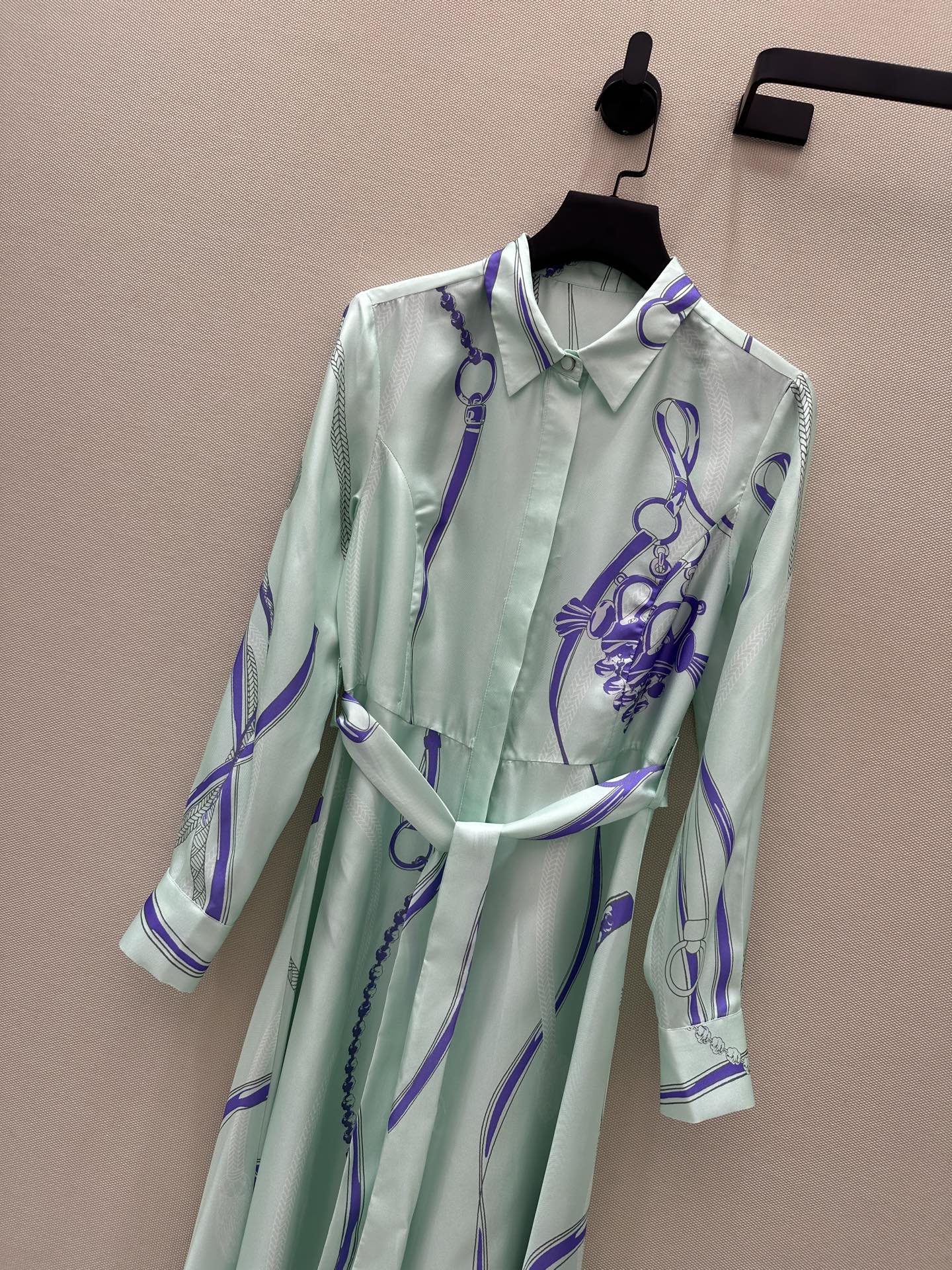 팔레프로이 리믹스 패턴 포지셔닝 프린트 100% 트위일 실크 원피스