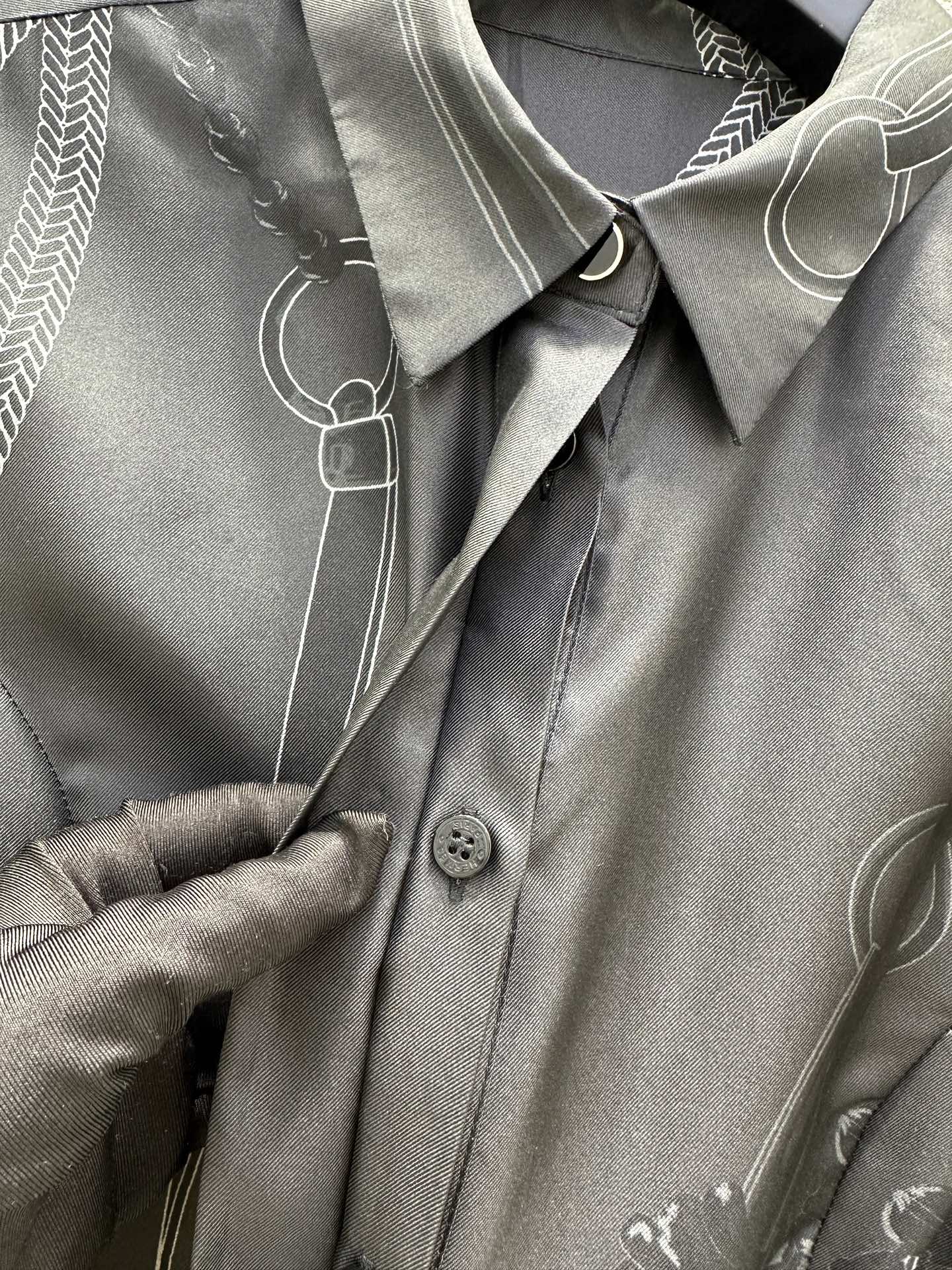팔레프로이 리믹스 패턴 포지셔닝 프린트 100% 트위일 실크 원피스
