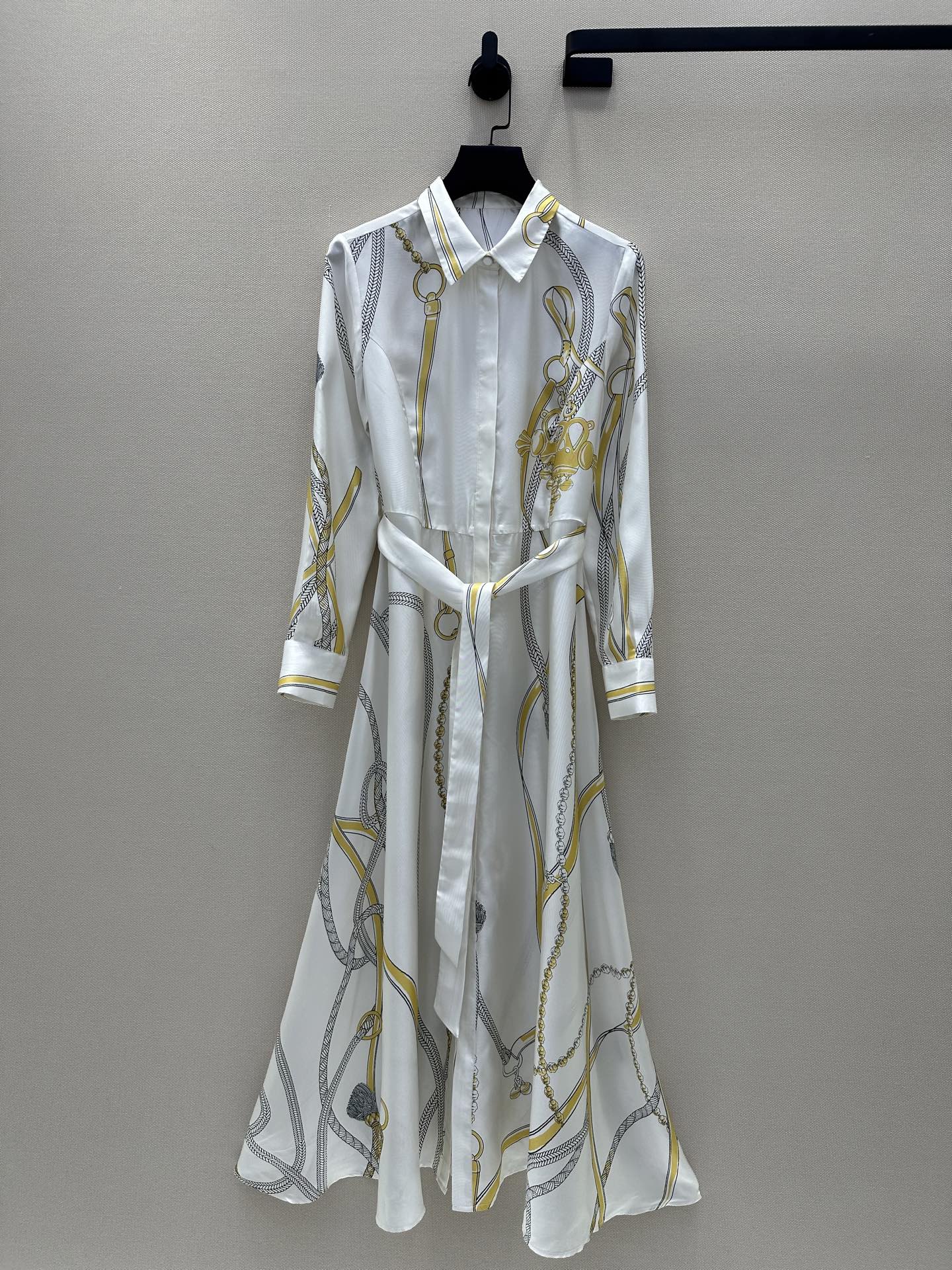 팔레프로이 리믹스 패턴 포지셔닝 프린트 100% 트위일 실크 원피스