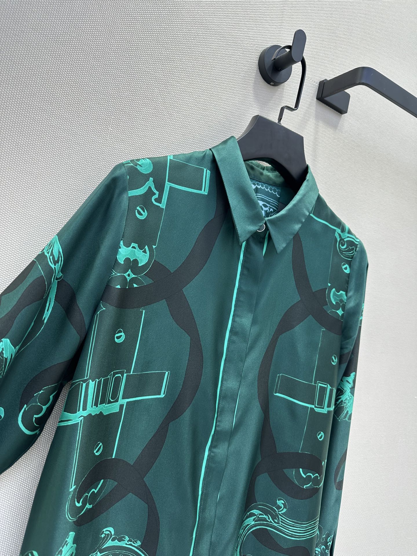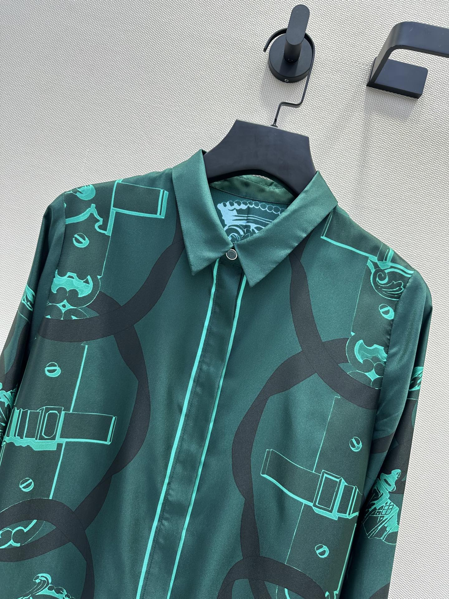 체인링 패턴 위치 인화 실크 셔츠