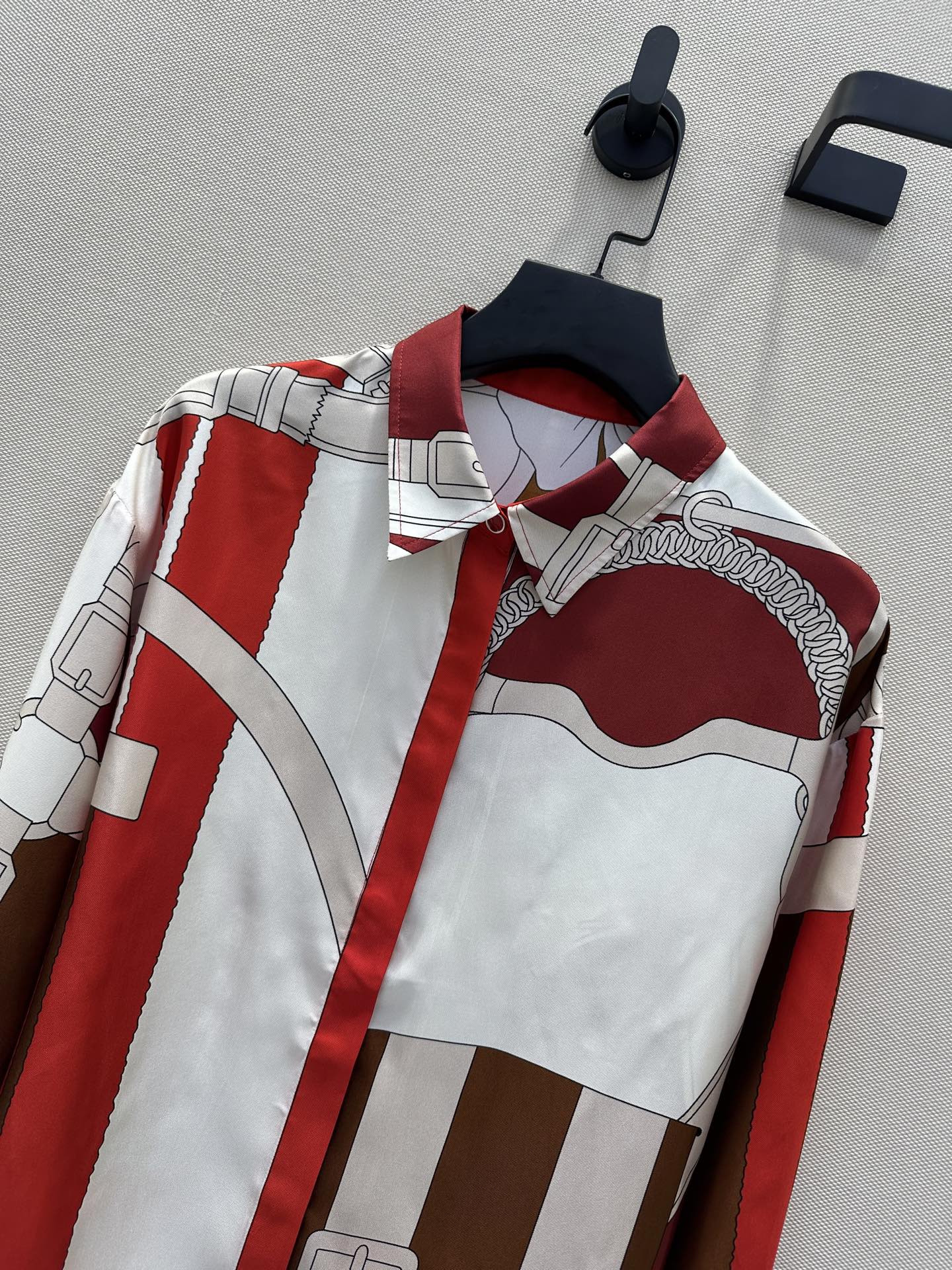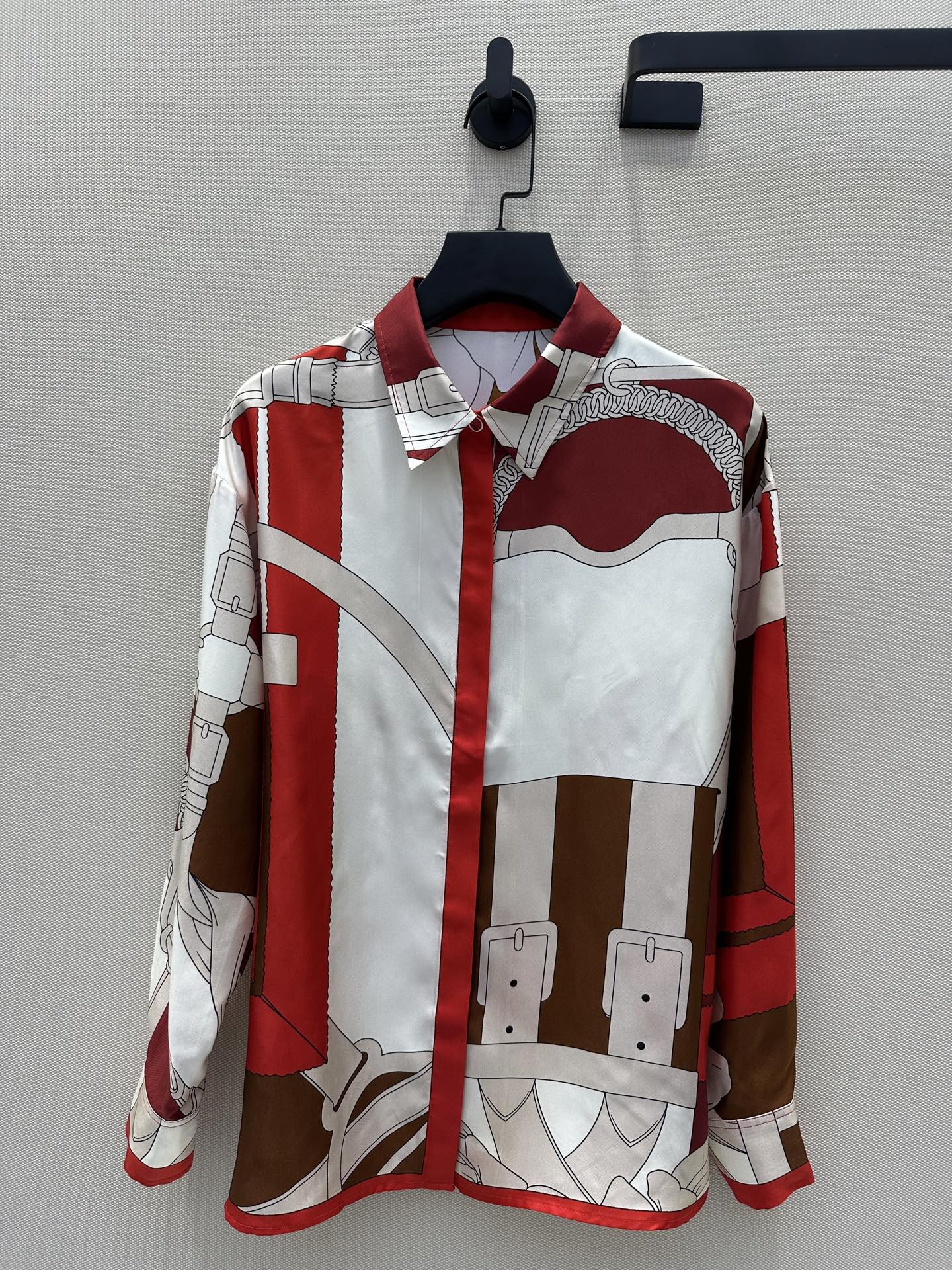 체인링 패턴 위치 인화 실크 셔츠