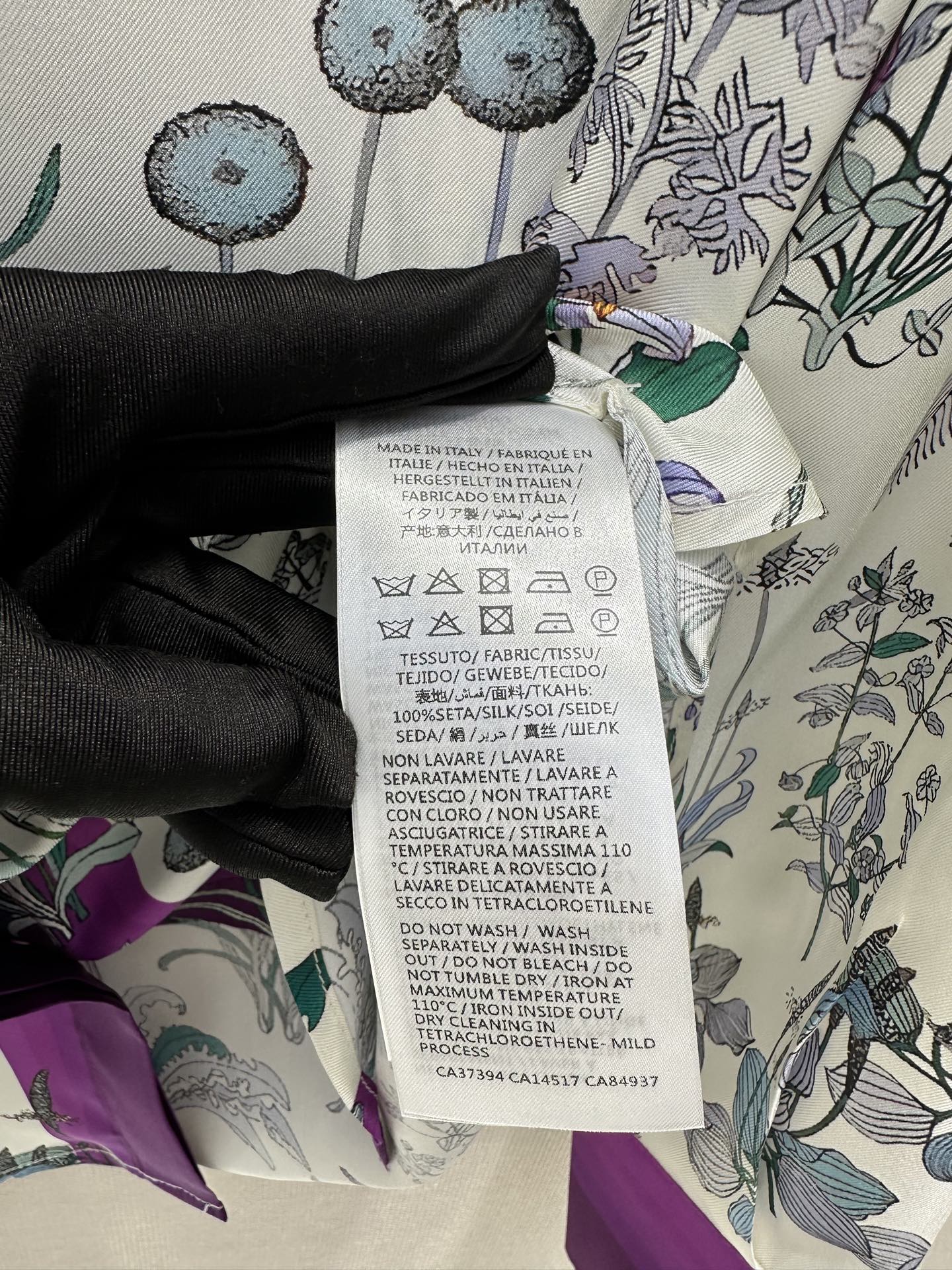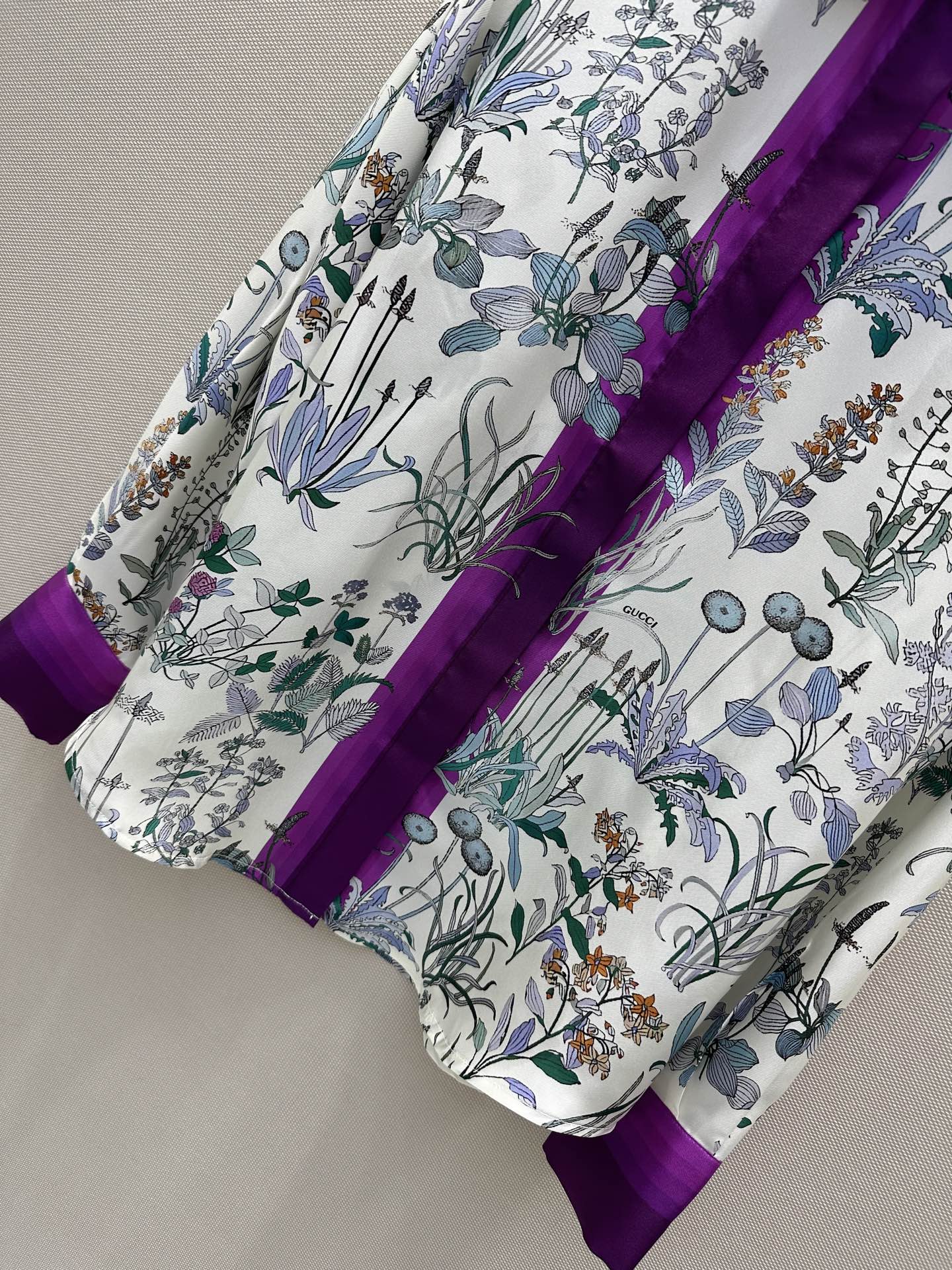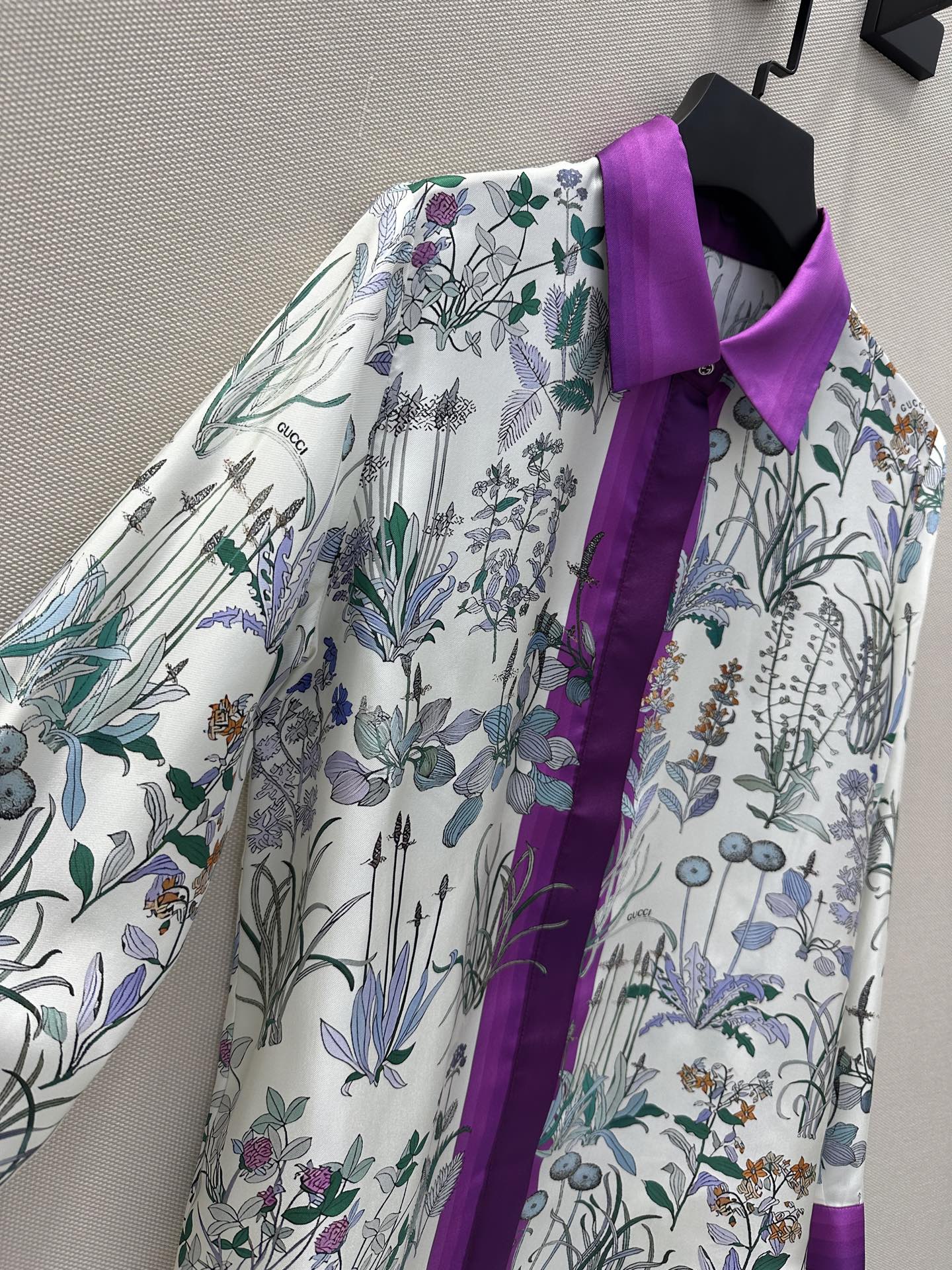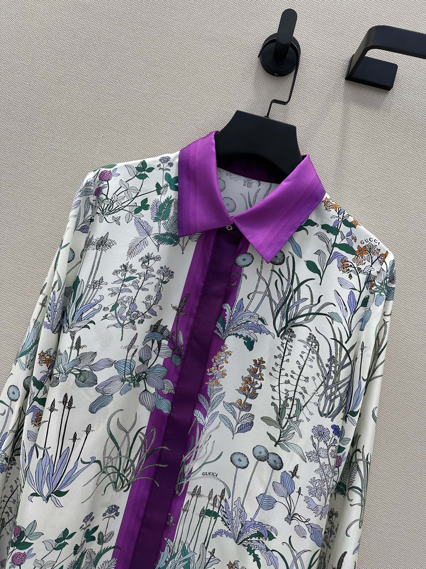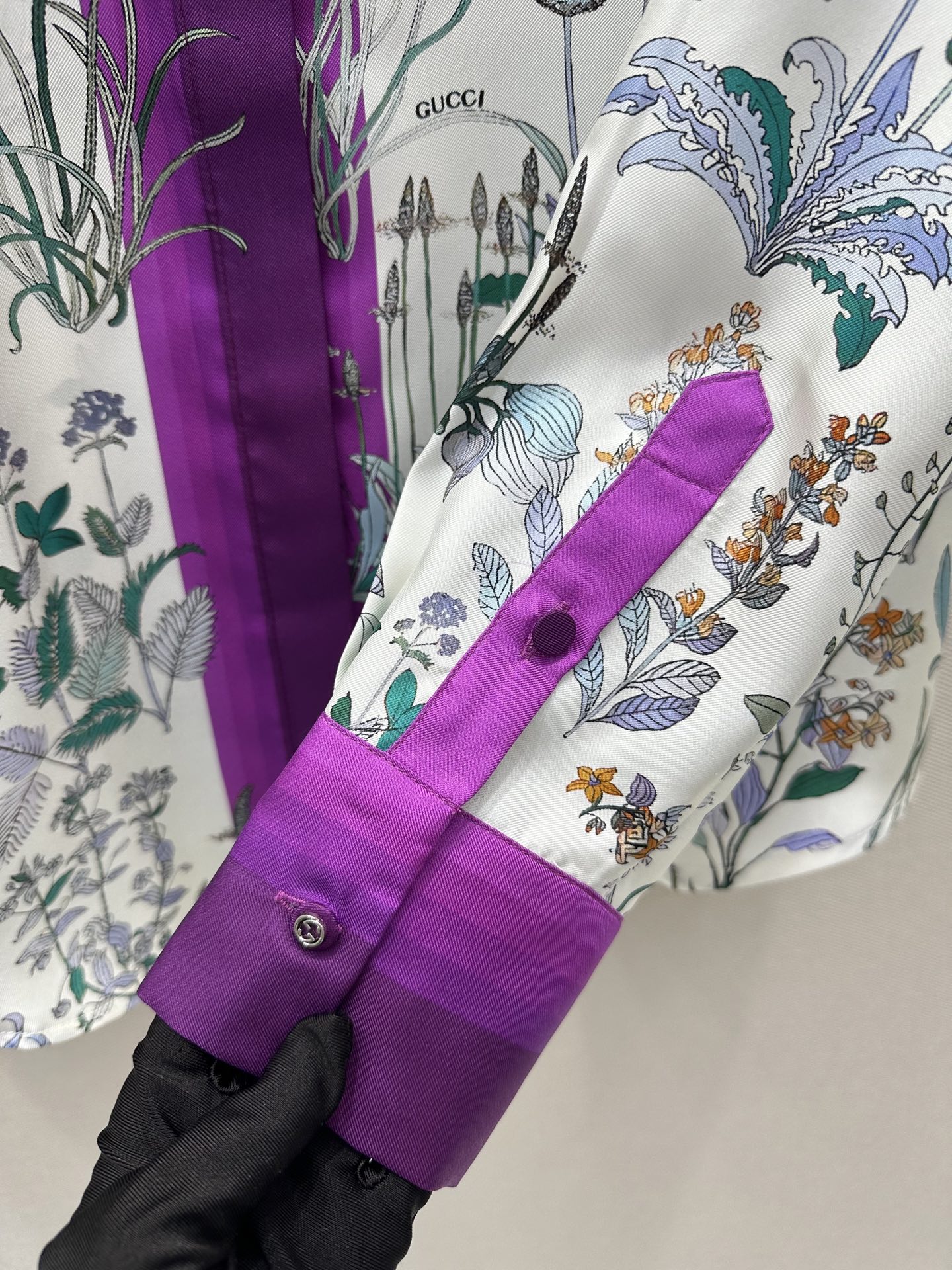 G 체인스트랩 디테일 플라워 프린트 실크 롱슬리브 셔츠