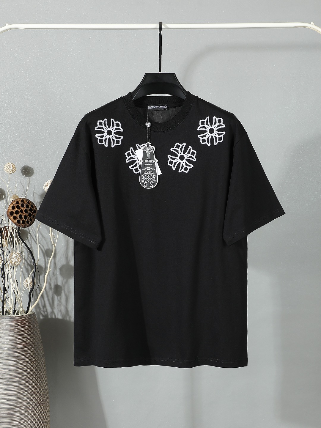 자수 로고 반팔 티