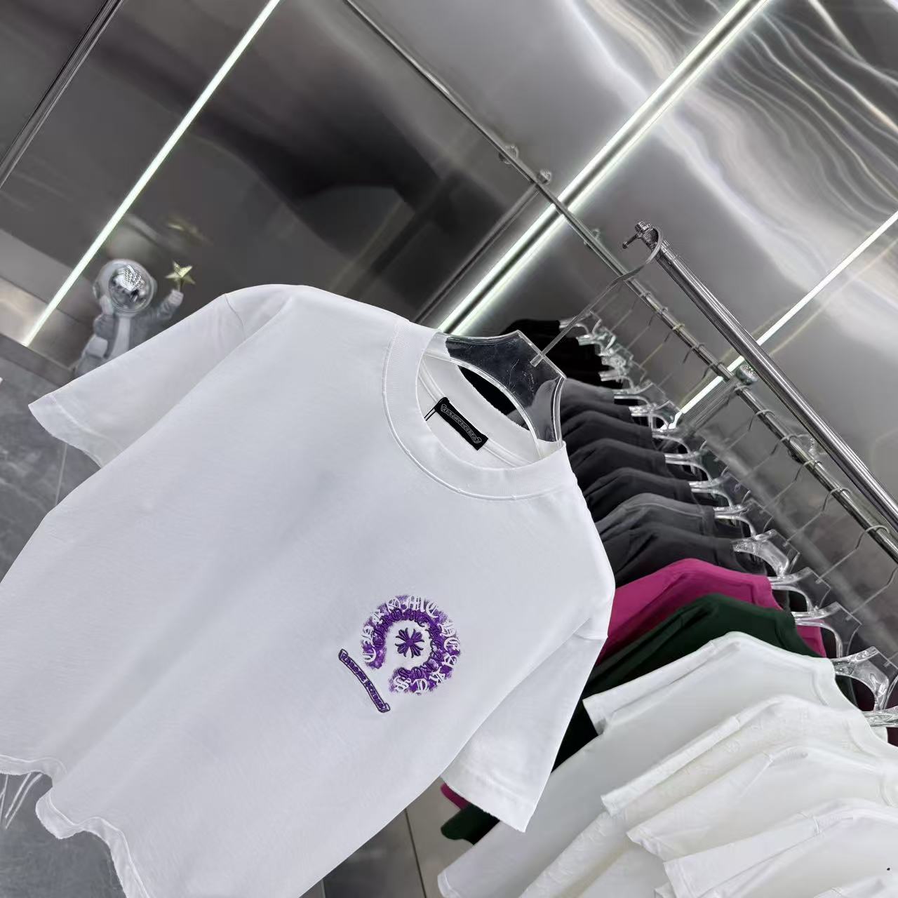 실크스크린 자수 라운드넥 반팔 티셔츠