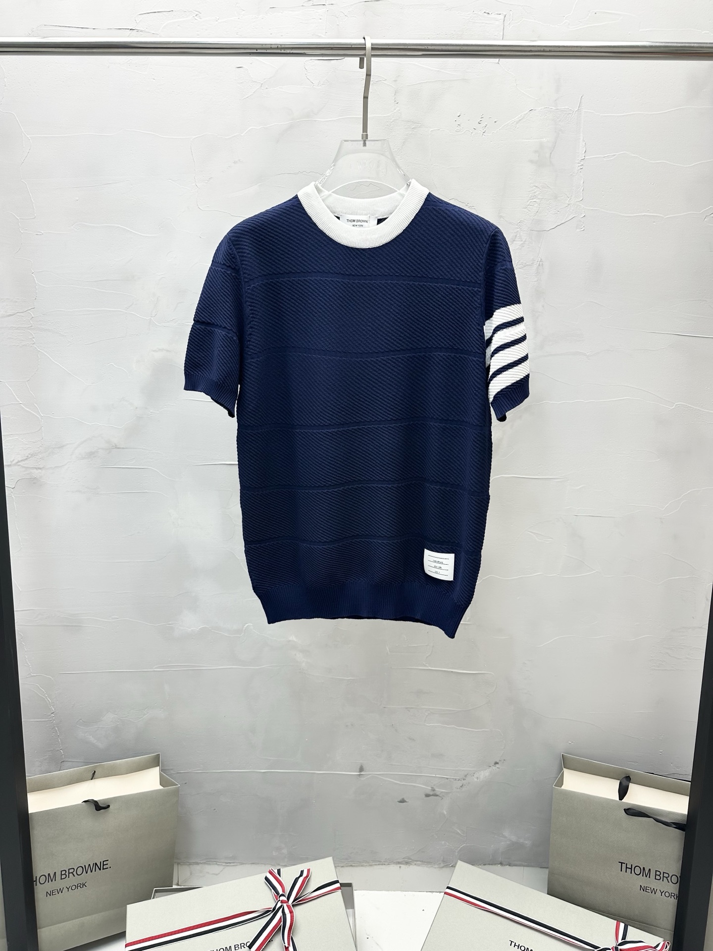 사선 줄무늬 니트 반팔