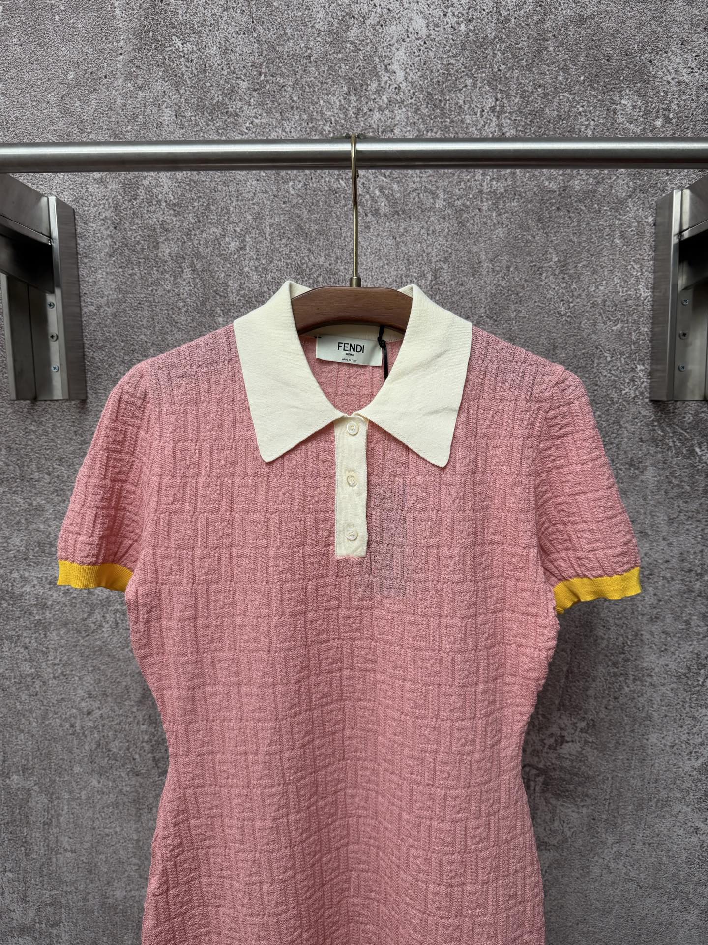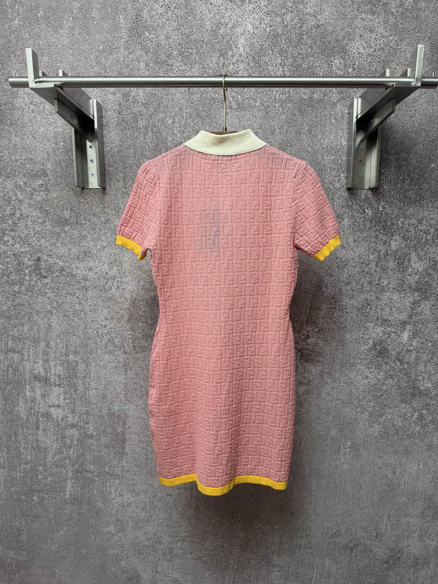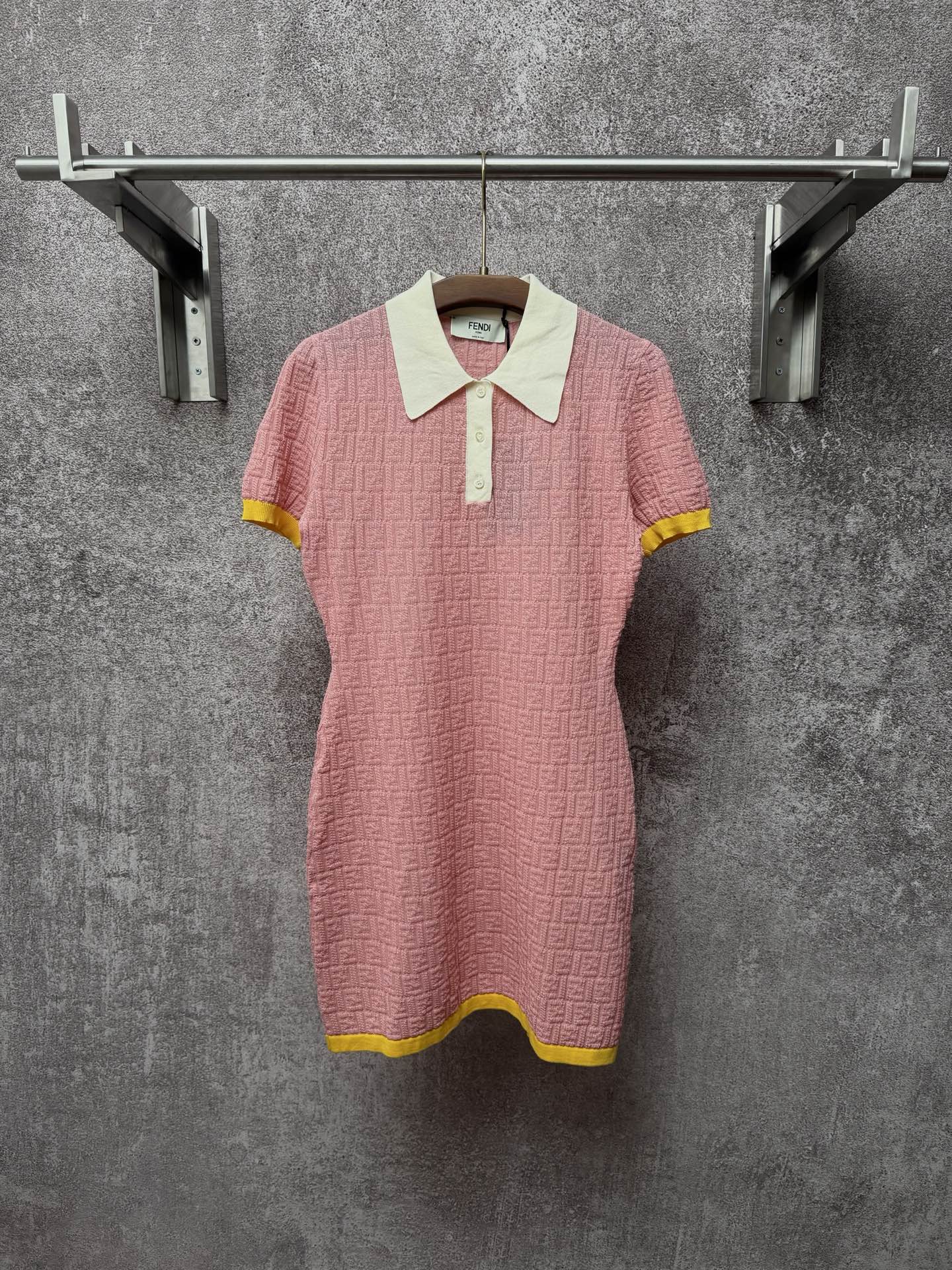 슬림핏 숏 폴로 칼라 FF 패턴 피스 컬러 숏 슬리브 원피스