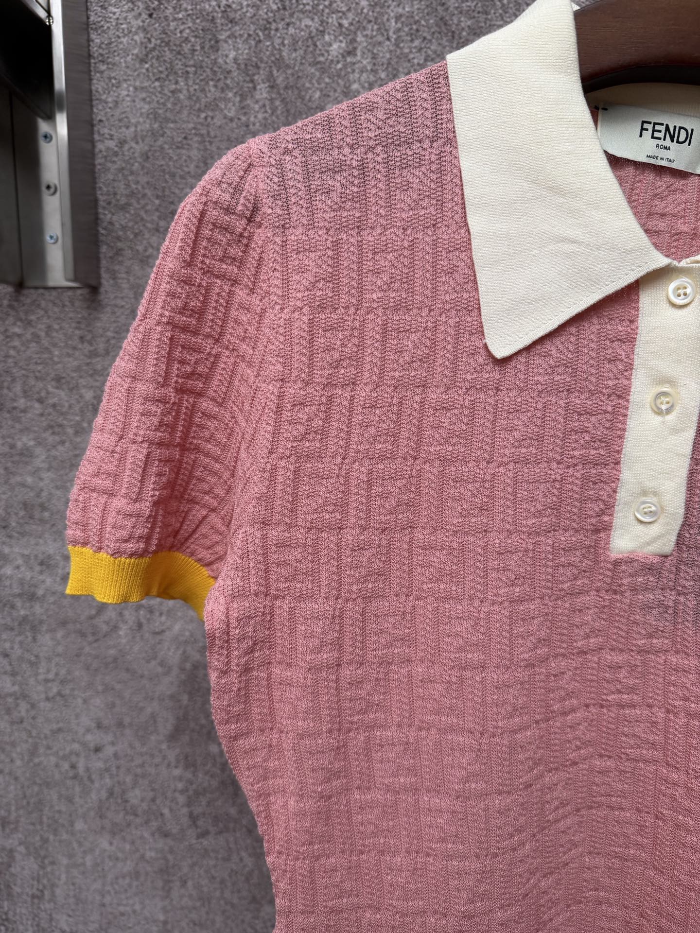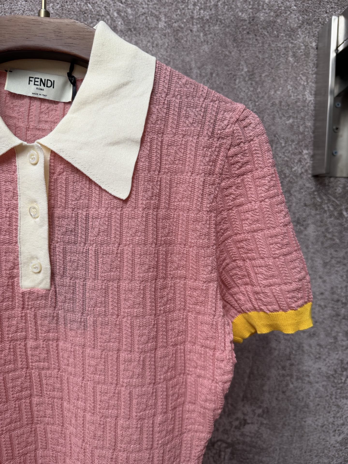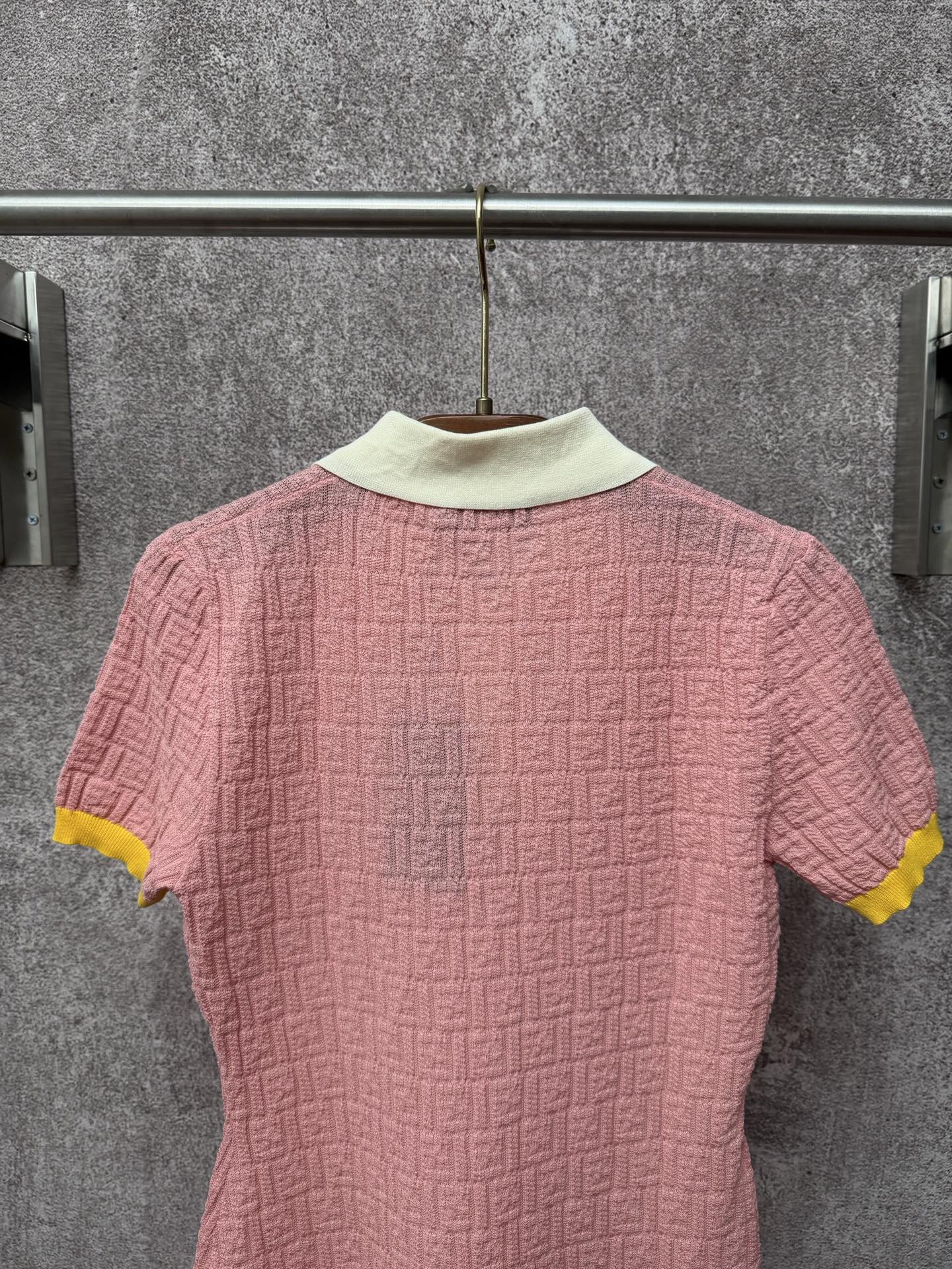 슬림핏 숏 폴로 칼라 FF 패턴 피스 컬러 숏 슬리브 원피스