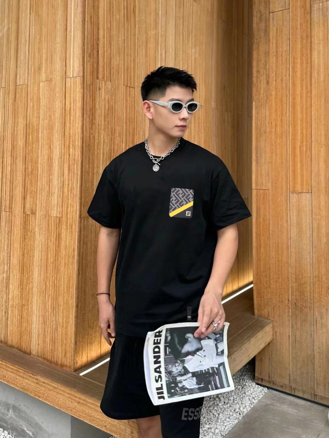 남성 라운드넥 숏슬리브 티셔츠 Fendi Tape 자수