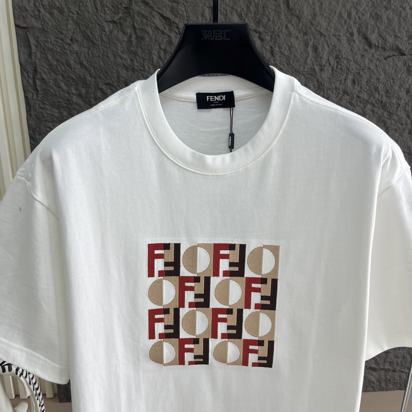 남성 라운드넥 숏슬리브 티셔츠 Fendi Tape 자수