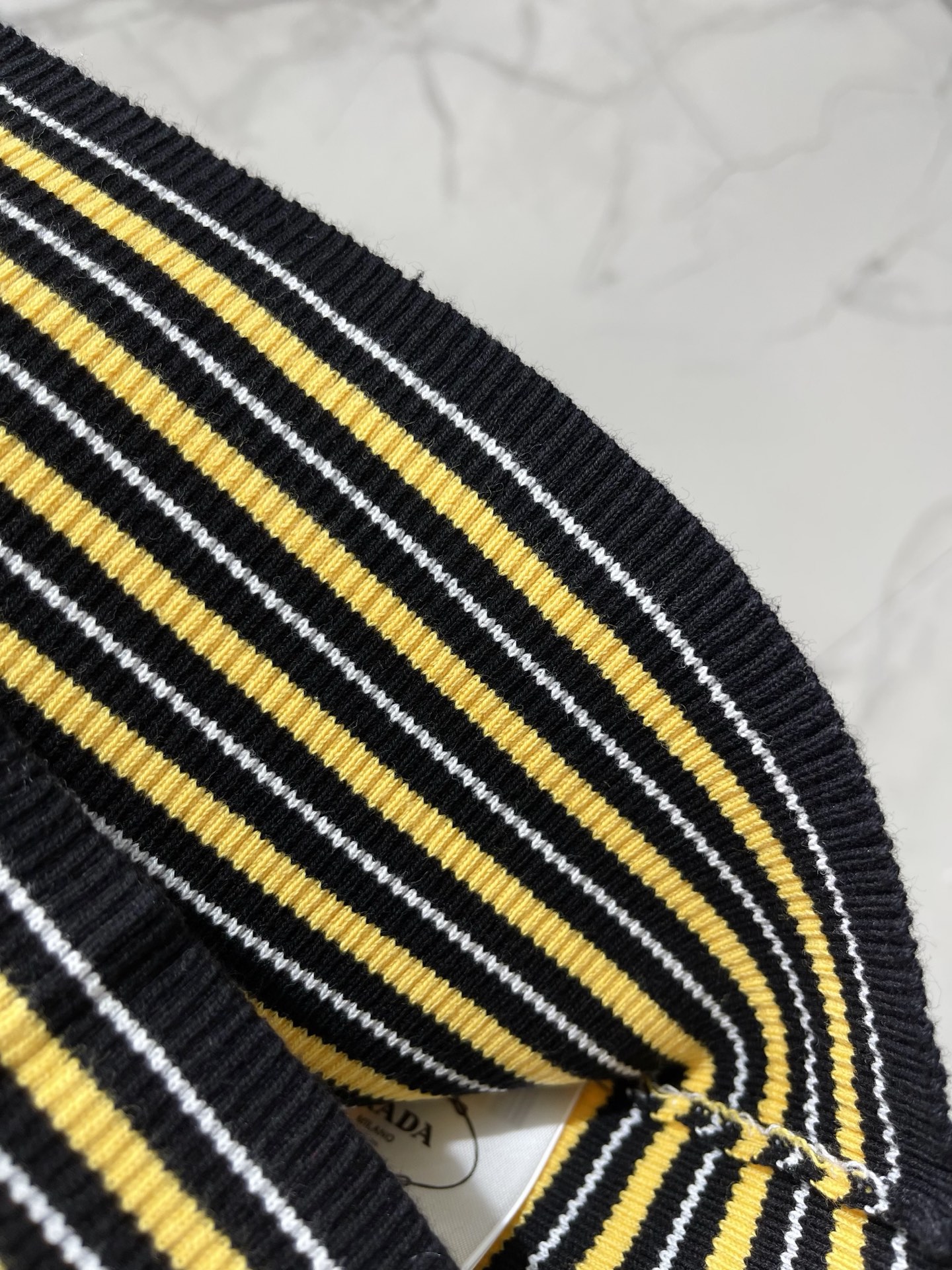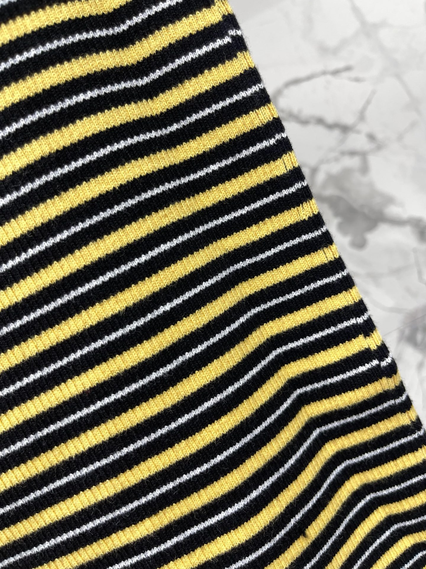 알파벳 로고 자카드 스트라이프 슬림 니트 반팔