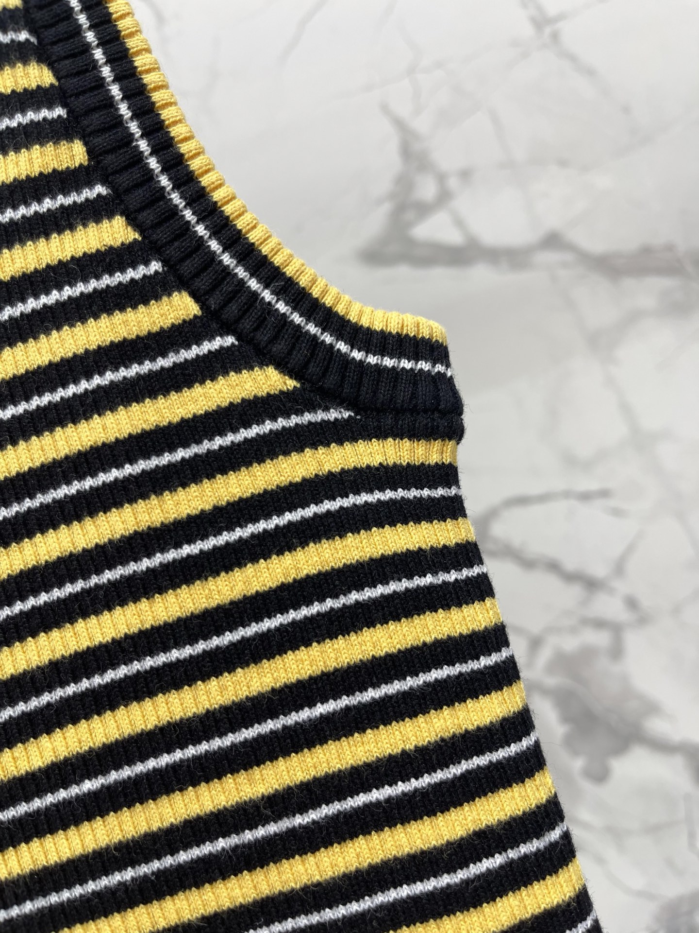 라운드넥 삼각 스트라이프 컬러블록 니트 숏슬리브