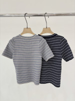 스트라이프 반팔 니