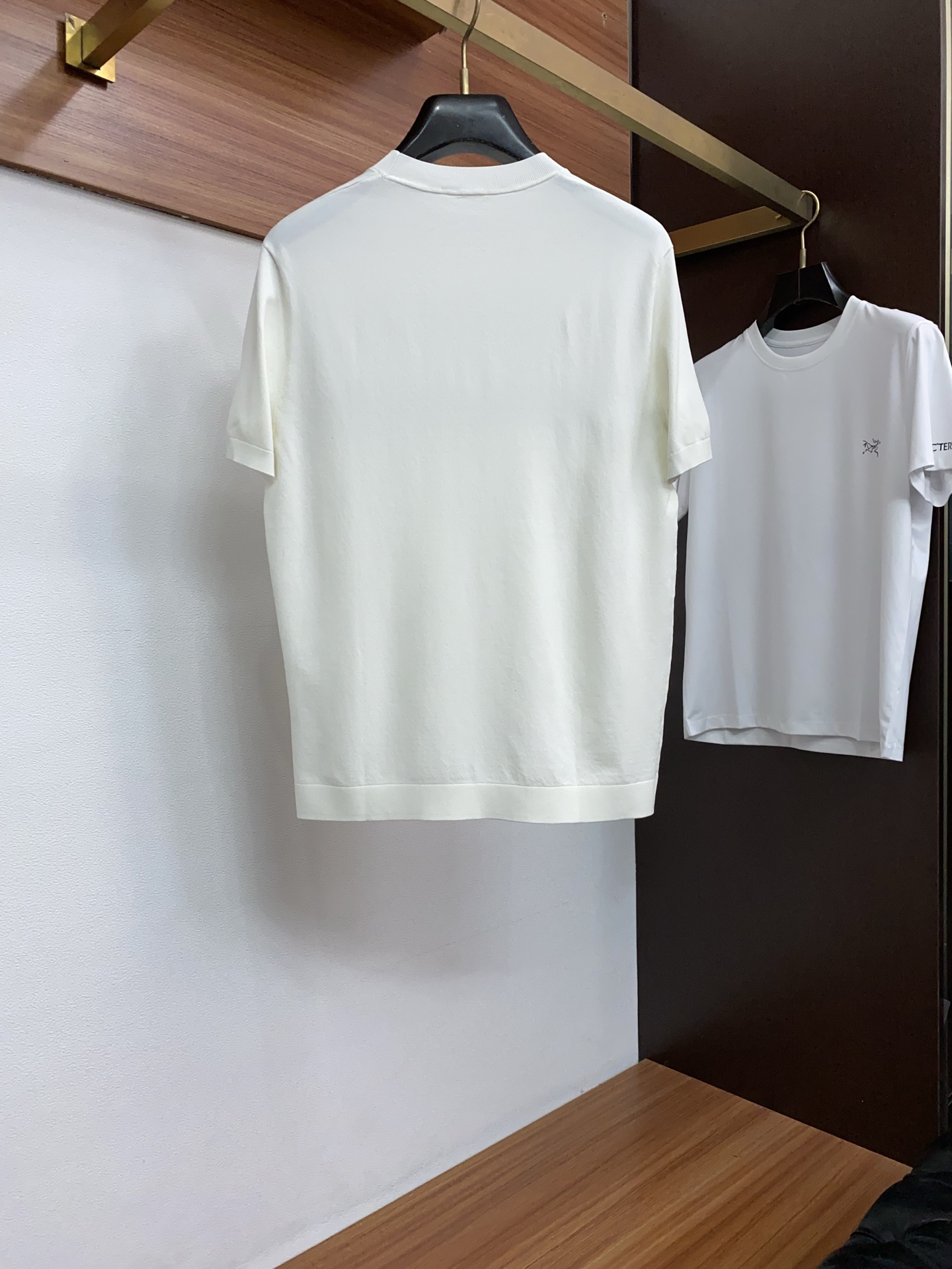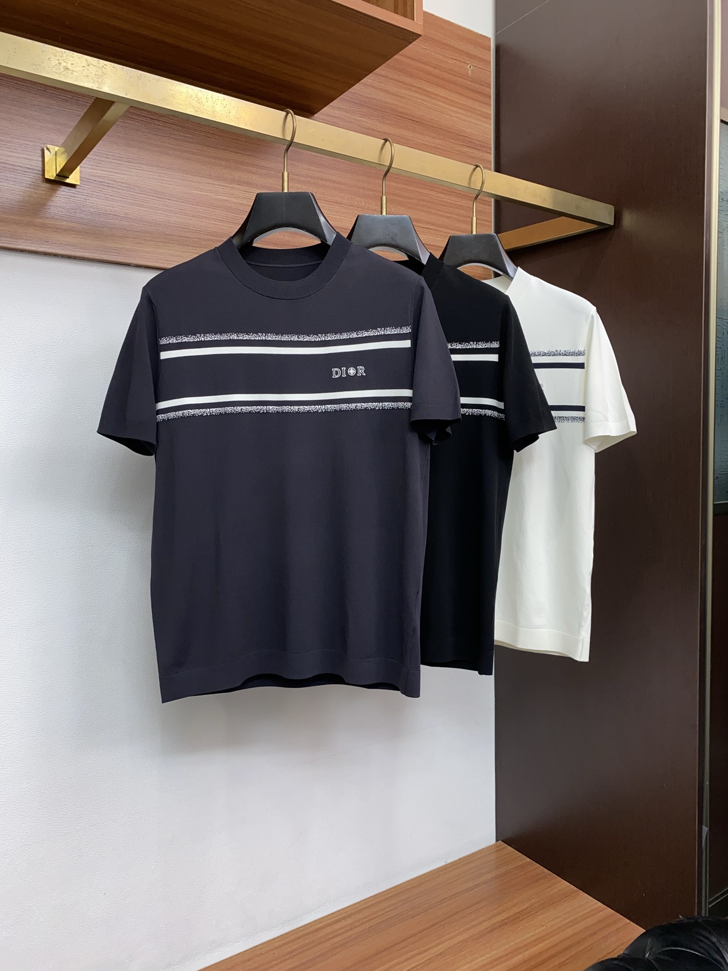 고급 심플 라운드넥 니트 반팔 티셔츠