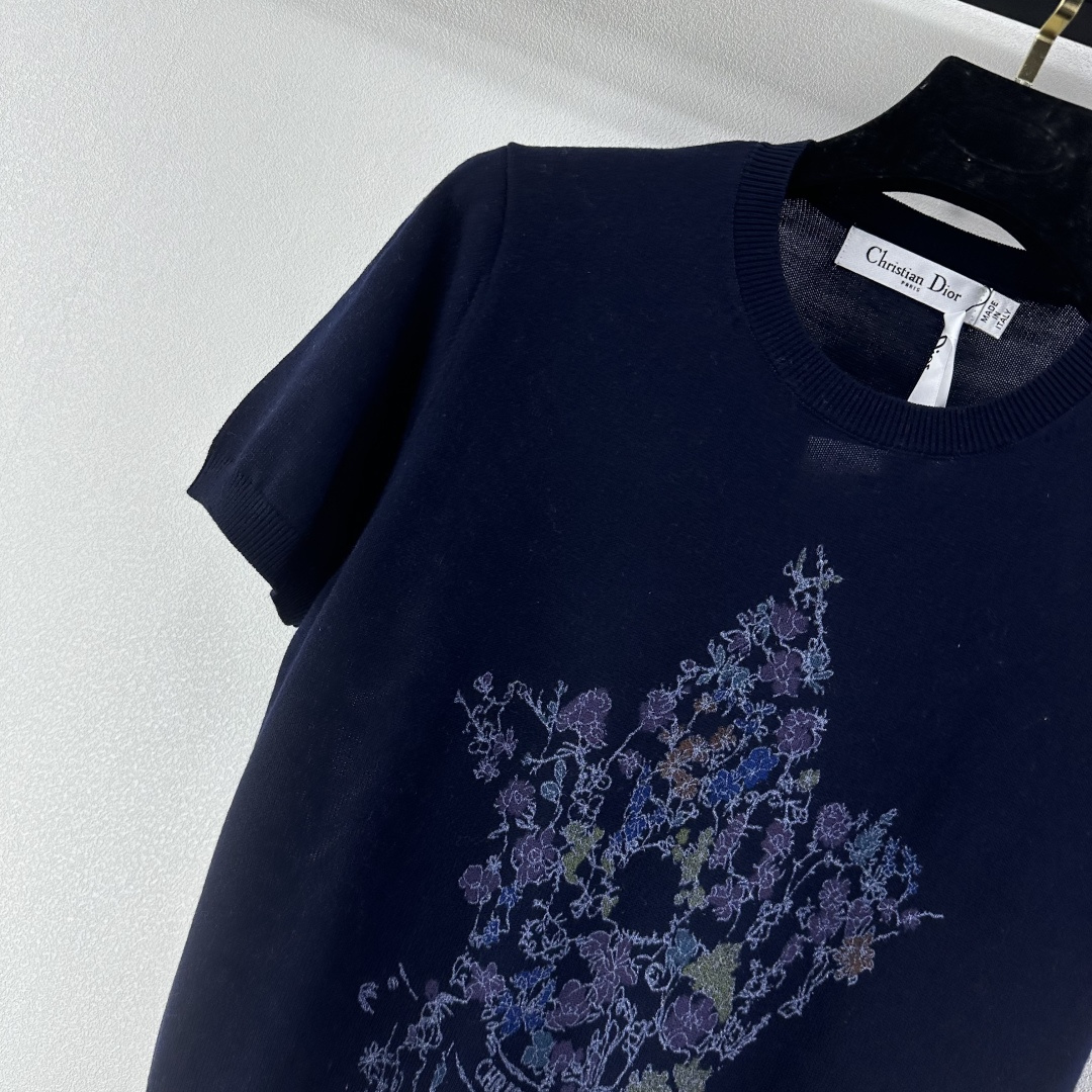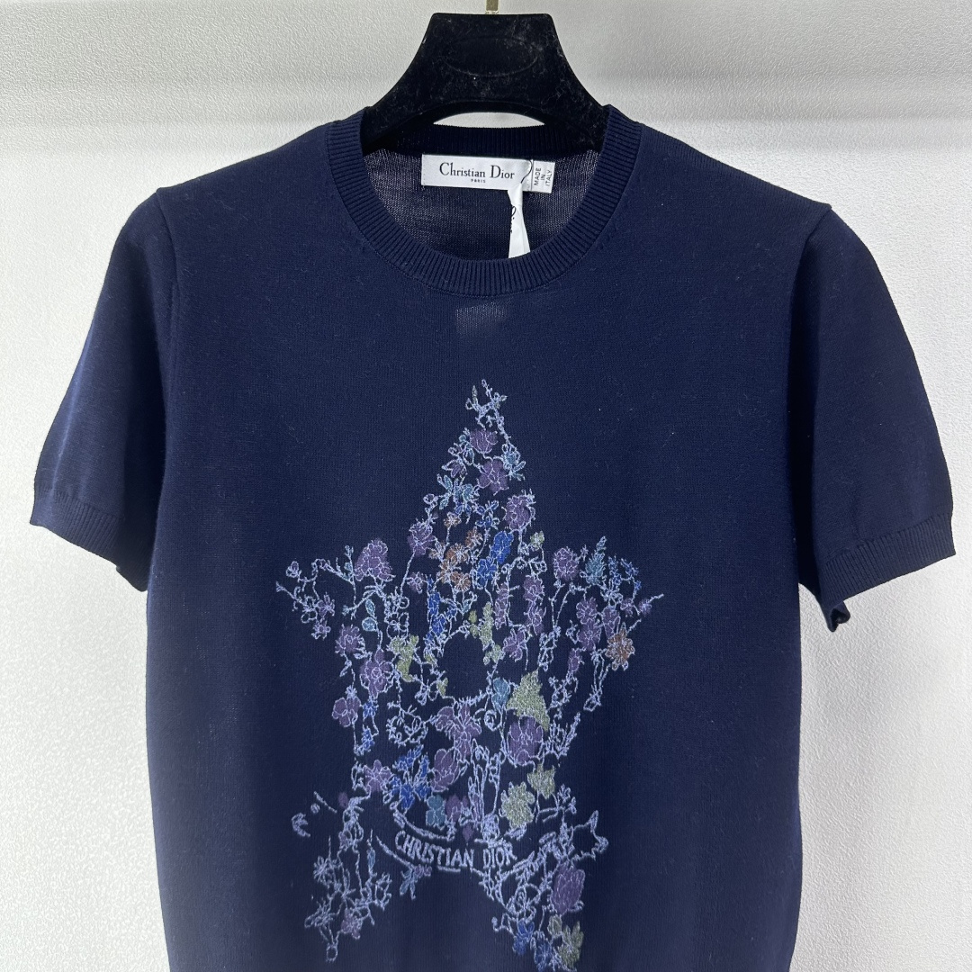 꽃무늬 오각별 자수 니트 반팔