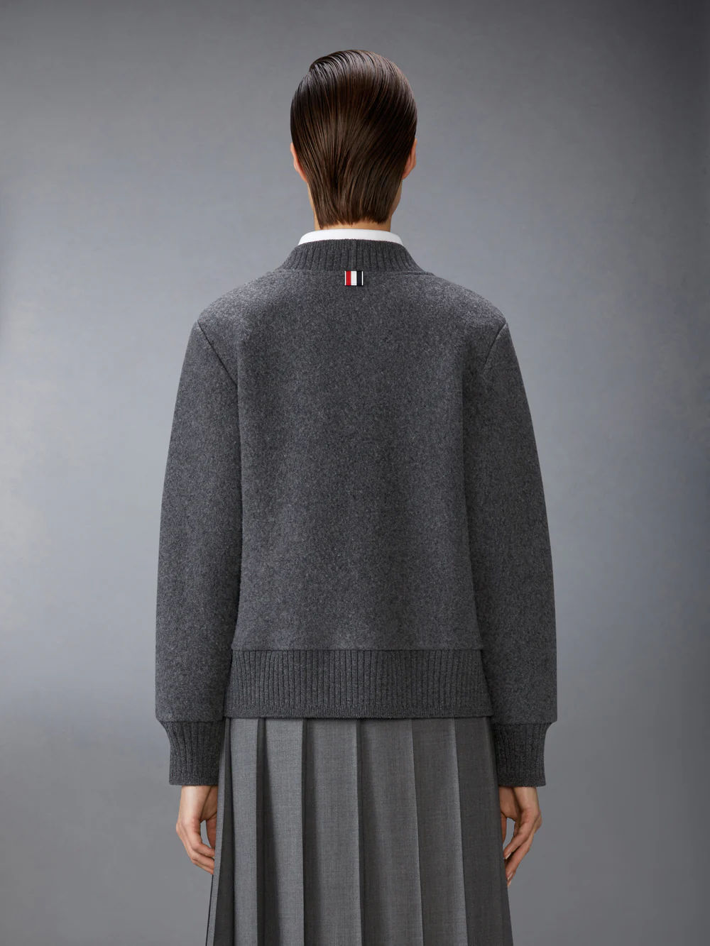 울 크레이프 4-바 크루넥 카디건