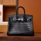 • 에르메스 버킨 25 셀리에 크로커다일 무광 블랙 실버 하드웨어