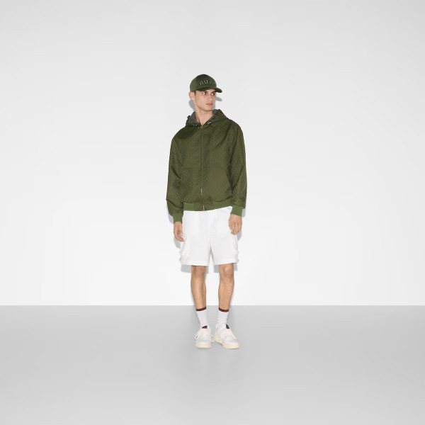 창립자 구찌오 구찌(Guccio Gucci)의 모노그램에서 영감을 얻어 오늘날에도 여전히 열렬한 지지를 받고 있는 GG 모티브. GG 코튼 립스탑과 하프 메시 안감의 조화가 돋보이는 여유로운 실루엣의 재킷.