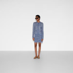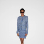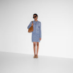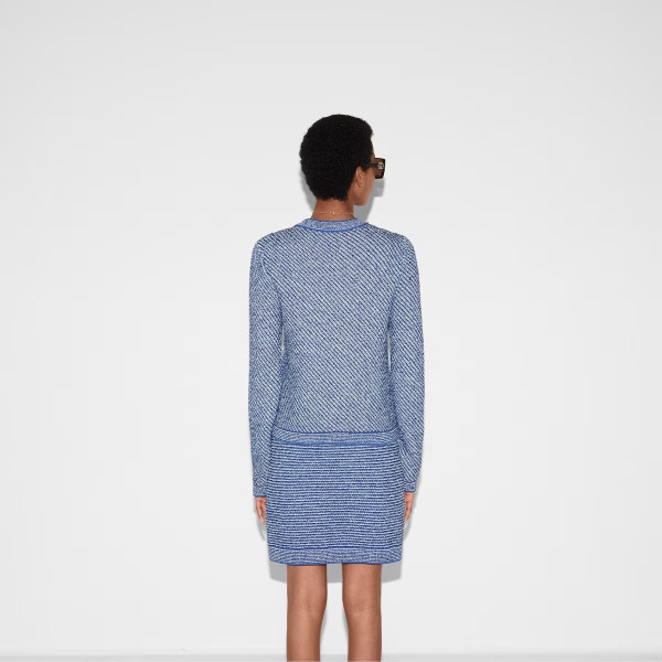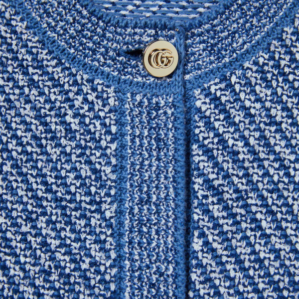 2025 크루즈 컬렉션에서 파인 코튼 니트로 선보인 크루넥 가디건. 세련된 라이트 블루 컬러에 골드 톤 더블 G 버튼으로 품격을 더한 디자인.