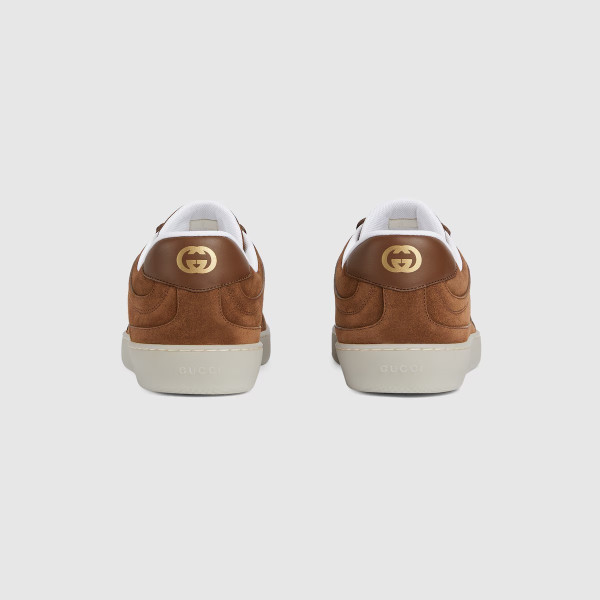 2025 가을-겨울 컬렉션, 1970년대의 레트로 농구화에서 영감을 얻은 스니커즈. 인터로킹 G 로고와 같은 시그니처 구찌 심볼로 스타일을 완성함. 스웨이드 및 레더 트리밍으로 출시된 모델.