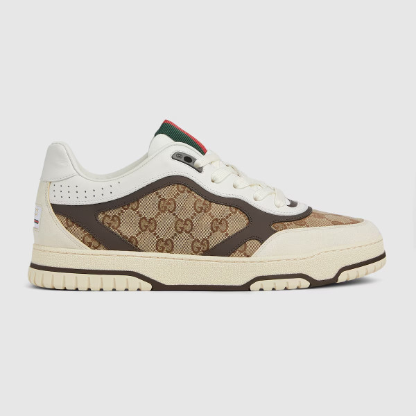 구찌의 정통성이 드러나는 스트라이프를 현대적인 실루엣에 과감한 디테일로 표현한 리웹(Re-Web). 베이지/에보니 오리지널 GG 캔버스, 그린/레드 웹(Web) 텅 등 아이코닉한 디테일이 시선을 사로잡는 스니커즈.