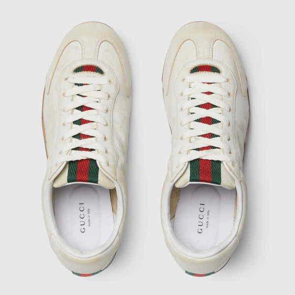 새로운 페이스에 맞춰 스포티함을 재해석한 초경량 디자인, 구찌 시프트를 만나보세요. 독특한 워시드 마감으로 처리된 레더로 아이템의 고유한 개성이 돋보입니다. 측면 스티칭과 연속적인 스트라이프와 같은 스타일을 통해 자연스럽게 웹(Web) 디테일로 완성된 이 세련된 실루엣은 움직이는 몸을 따라 세련된 느낌을 연출하고 일상에 우아함을 선사합니다.