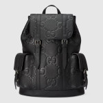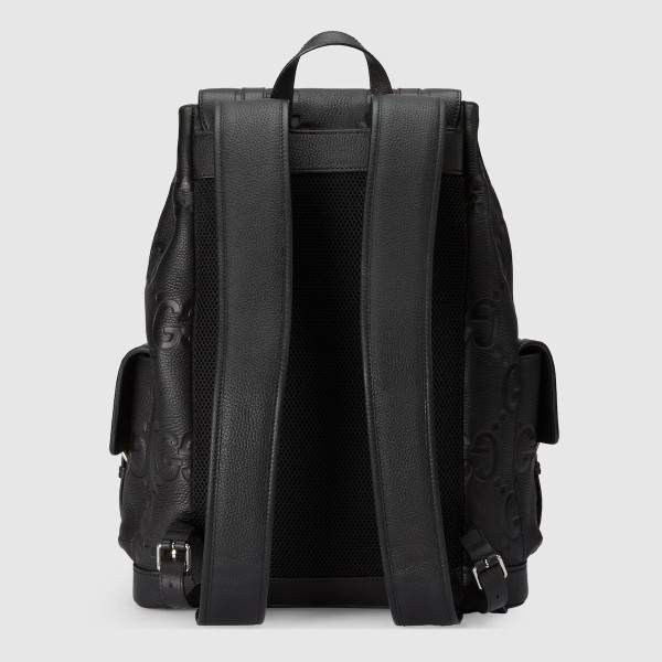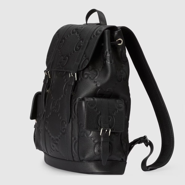 2023 프리폴 컬렉션에서 레더 러기지 아이템 셀렉션을 통해 다시 한번 선보이는 올블랙 점보 GG 디자인. 창립자 구찌오 구찌(Guccio Gucci)의 이니셜을 재해석한 하우스의 시그니처 GG 모티브를 맥시 사이즈로 표현해 독보적인 로고 감성을 자아냄. 여러 개의 포켓과 쉽게 멜 수 있는 숄더 스트랩으로 이루어진 상징적인 레더 소재의 백팩.