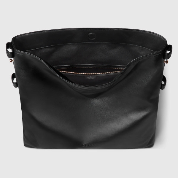 2025 가을-겨울 컬렉션, 편안한 실루엣에 숄더 스트랩의 시그니처 홀스빗 디테일로 고급스러움을 불어넣은 소프트 스무드 레더 구찌 베아트릭스 핸드백. 골드 톤 메탈 장식과 필수품을 안전하게 보관해주는 지퍼 포켓이 세련된 분위기를 더합니다. 일상 필수품을 편리하게 보관할 수 있도록 설계되어 우아함과 기능성을 겸비한 가방입니다.