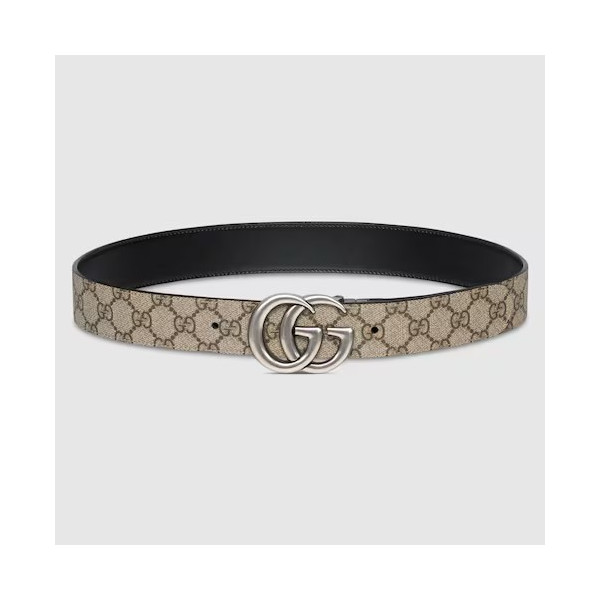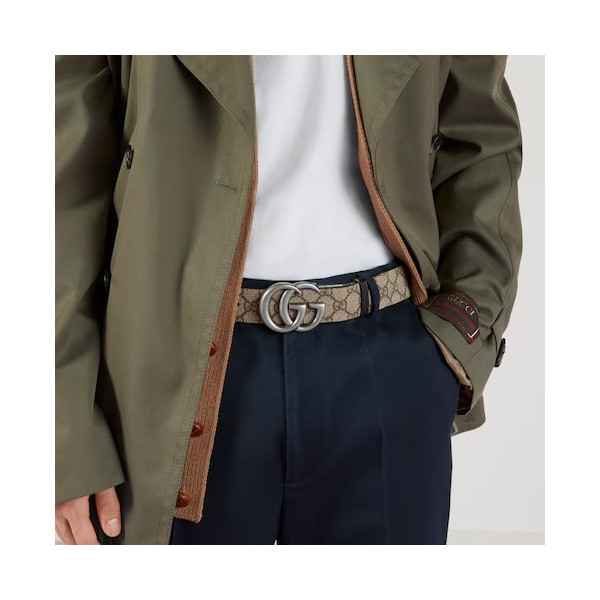 다양하게 활용할 수 있는 디자인으로 시대나 계절에 구애받지 않고 계속 착용할 수 있는 리버서블 레더 벨트. 베이지/에보니 GG 수프림 캔버스와 블랙 레더로 제공됨. 대표적인 더블 G 메탈 장식은 아카이브를 떠올리게 하는 컨템포러리 디자인으로 완성됨.